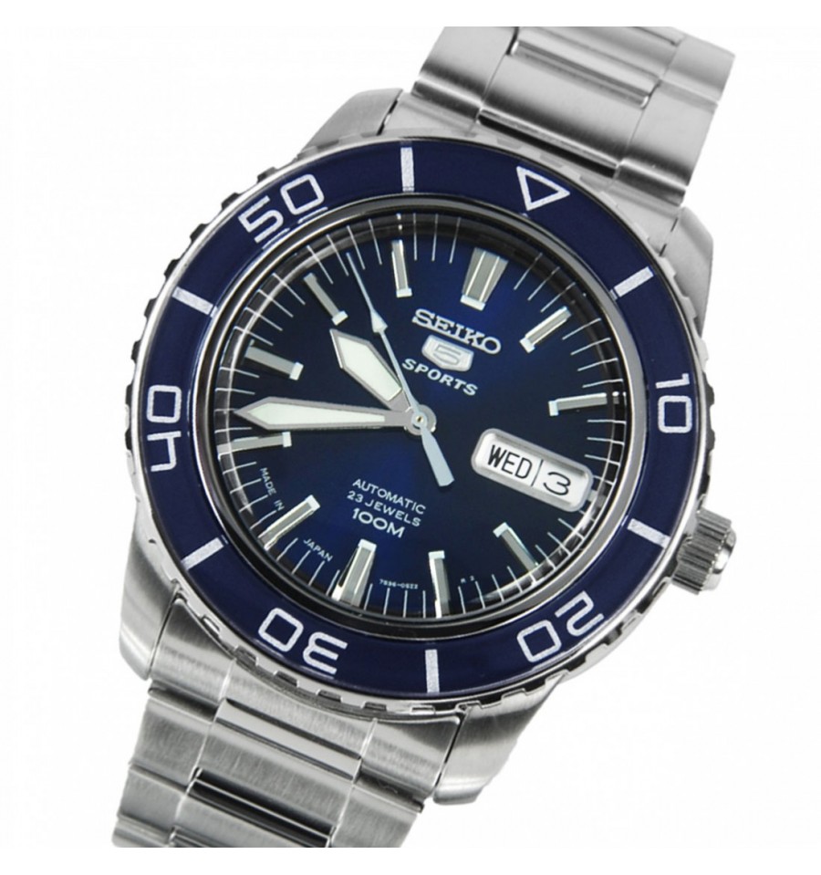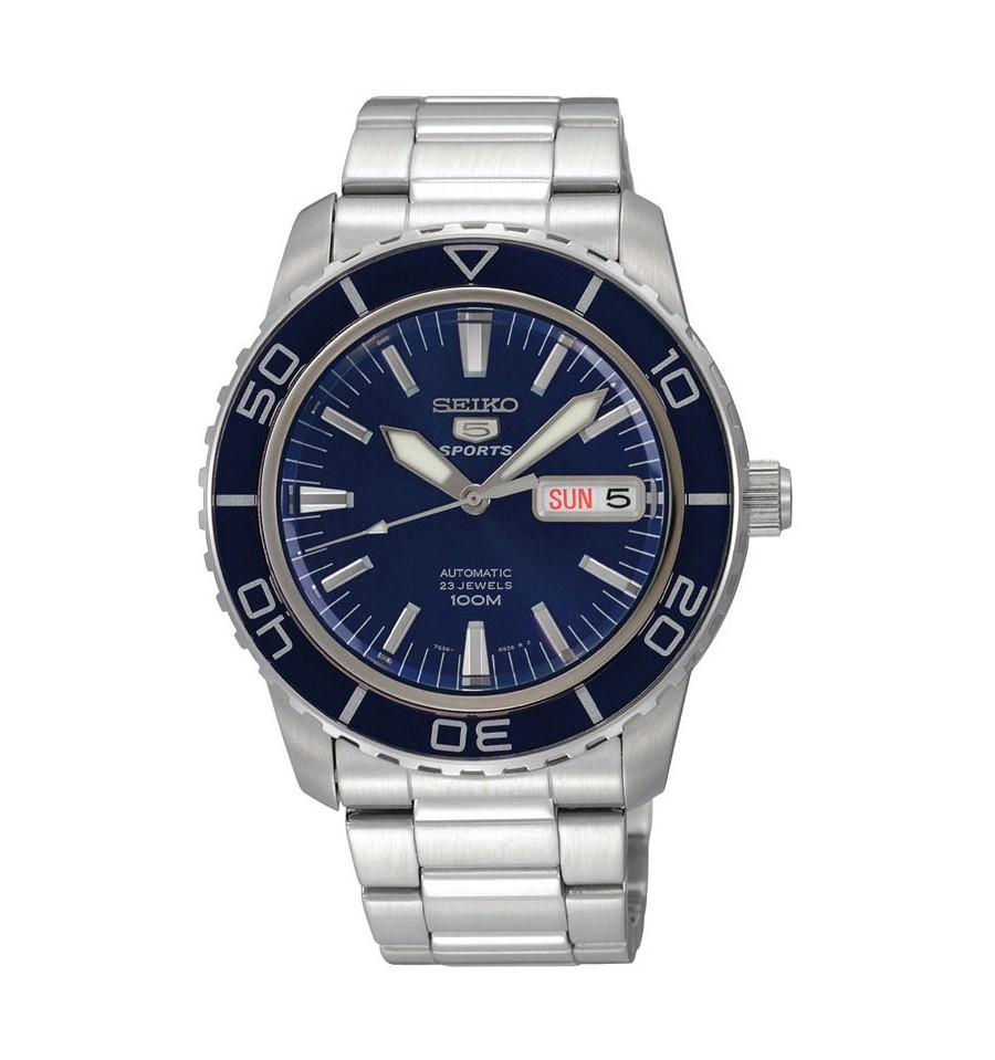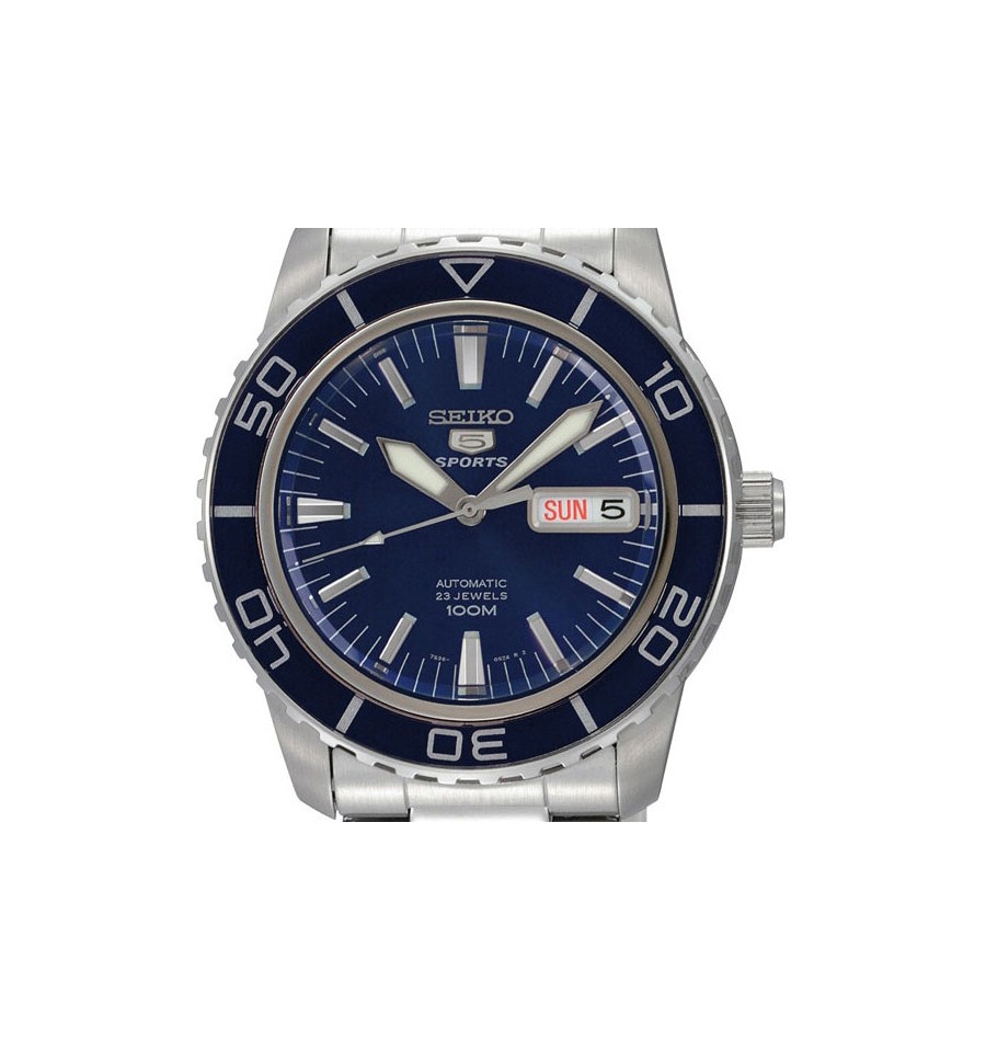 Acest ceas de mana barbatesc, SNZH53, produs de renumitul producator japonez Seiko, are carcasa si bratara din otel inoxidabil argintiu, cadranul albastru, bezelul rotativ, iar sistemul de inchidere este de tip fluture. Ceasul are mecanism automatic cu 23 de rubine cu balansoar si geamul este din cristal mineral intarit (hardlex crystal).