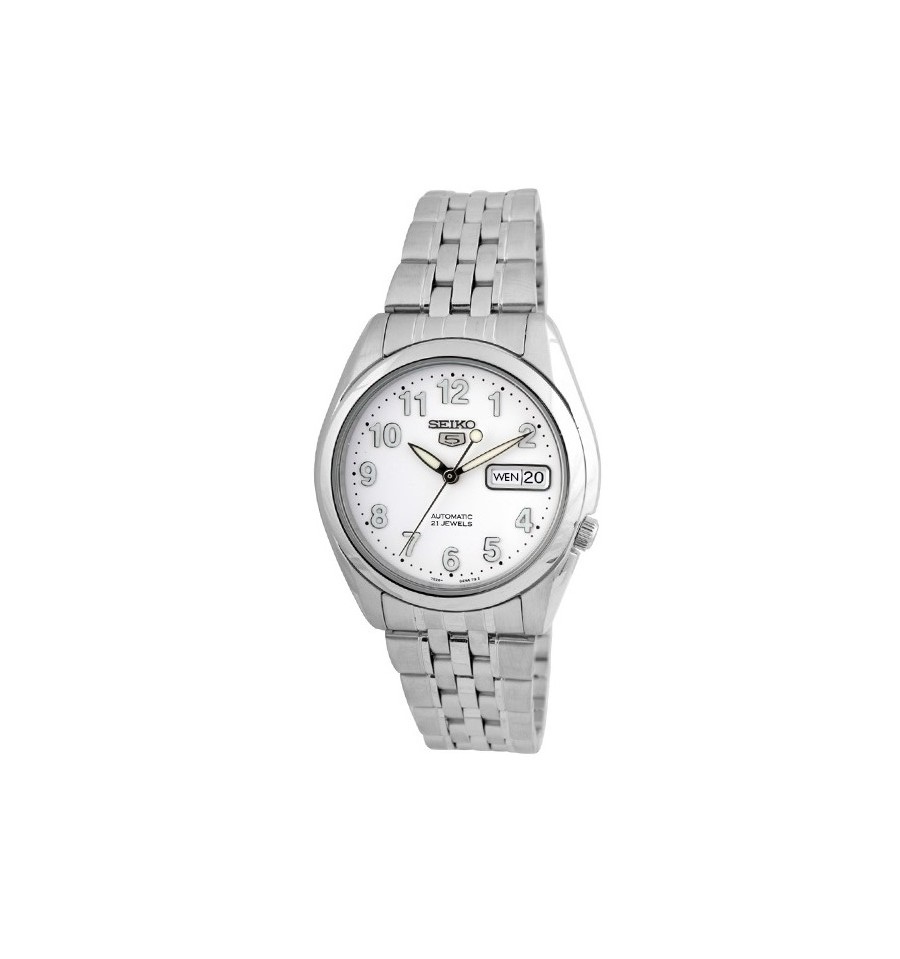 Acest ceas de mana de la vestita firma japoneza SEIKO din seria Seiko 5 automatic model SNK377K1 cu mecanism 7S26 cu 21 Jewels- rubine, rezistent la apa 30m, arata data si ziua in engleza sau franceza, carcasa si bratara sunt din otel inox , catarama cu buton pentru deschidere prin apasare, geamul din cristal Hardlex rezistent la zgarieturi, limbile sunt luminiscente, cifrele sunt linii care au deasupra puncte luminiscente, spatele infiletabil, grosimea carcasei 12mm, diametrul 38mm, cadran negru, produsul vine ambalat in cutie, cu manual de instructiuni, garantie un an.