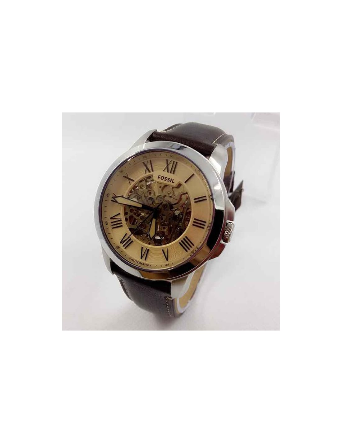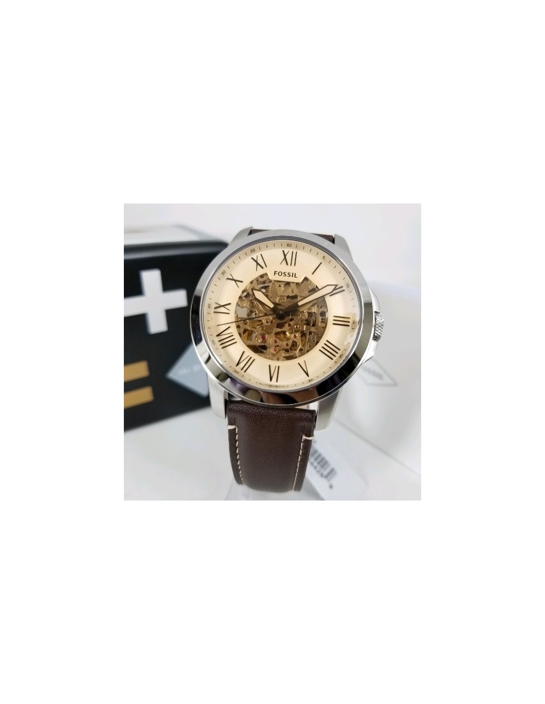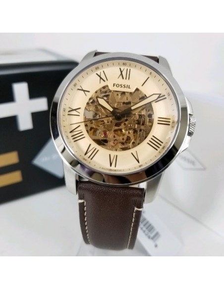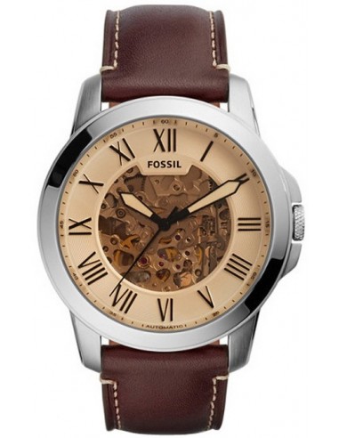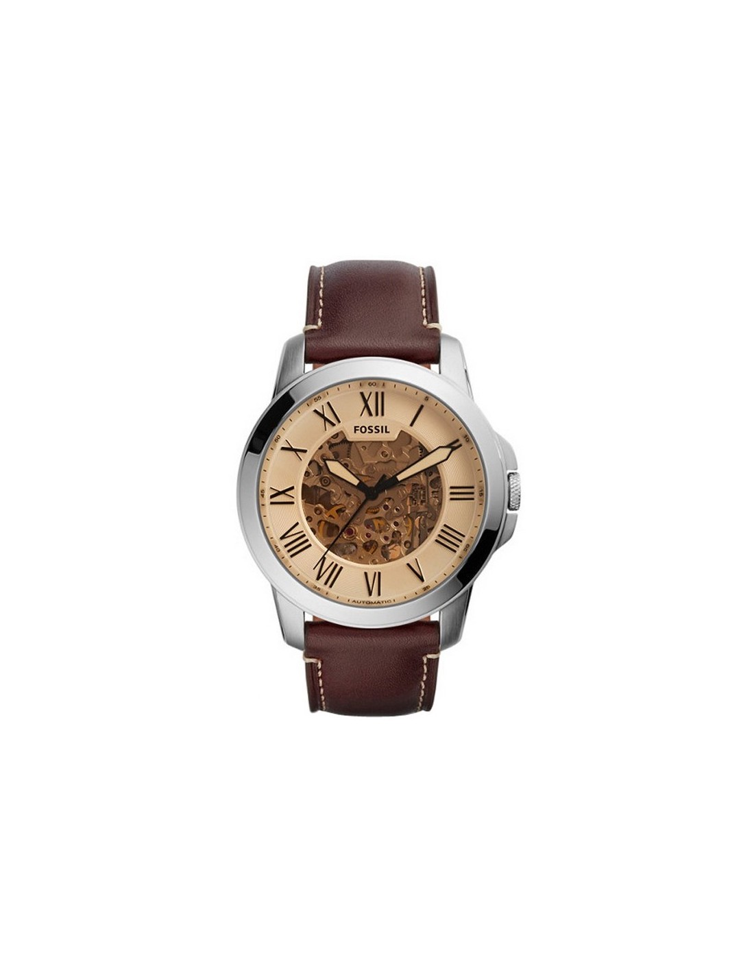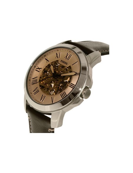 Ceas de mana barbati Fossil Automatic Grant Skeleton ME3122, este un ceas fashion automatic 8N24-N-Me de 45mm diametru si curea de piele maro si 50WR. Este un ceas analog cu geam cristal mineral.