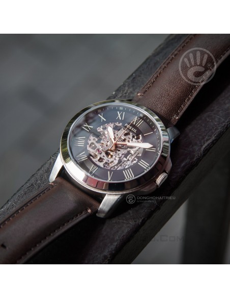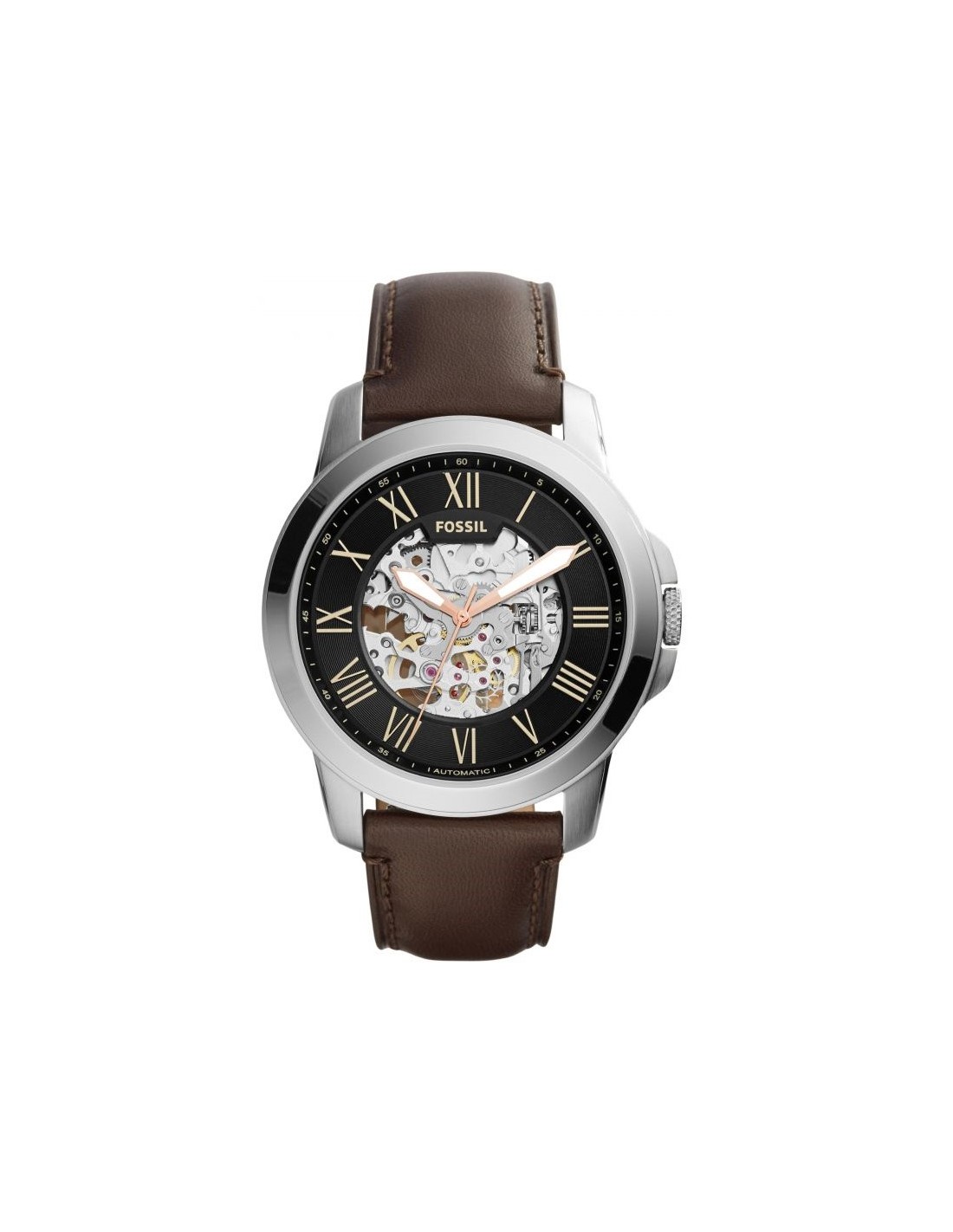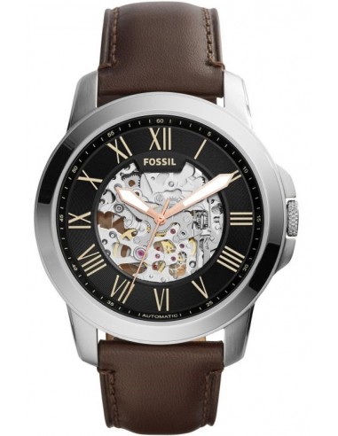 Ceas de mana barbati Fossil Automatic Grant Skeleton ME3100, este un ceas fashion automatic 8N24-N-Me de 45mm diametru si curea de piele maro si 50WR. Este un ceas analog cu geam cristal mineral.