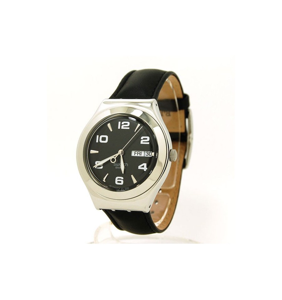 Acesta este un ceas de mana unisex fabricat de catre renumita firma elvetiana Swatch. Face parte din seria Irony Big. Carcasa este din otel inoxidabil. Bratara este din piele neagra. Cadranul negru este rotund. Afiseaza ziua si data. Rezista la apa. Este elegant si sobru.