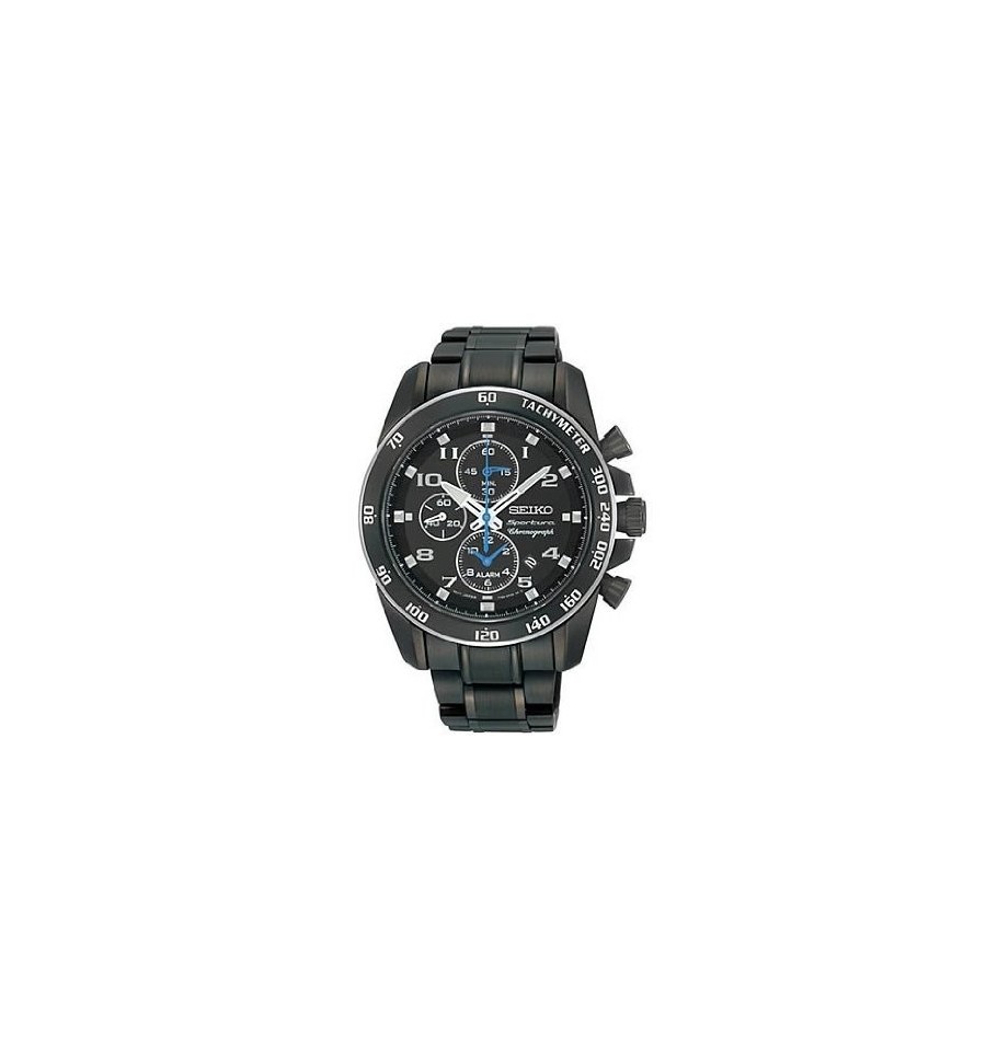 Acest ceas de mana barbatesc produs de renumitul producator japonez Seiko face parte din colectia Sportura, cunoscuta ca lider al ceasurilor sport, fiind insipate din designul sport al curselor de motociclete. Ceasul are carcasa si bratara din otel inoxidabil placat inonic negru, geamul din safir rezistent la zgarieturi, cadranul negru, iar sistemul de inchidere este de tip deployant. Seiko SNAE77 este dotat cu funtie cronograf, alarma si tahimetru.