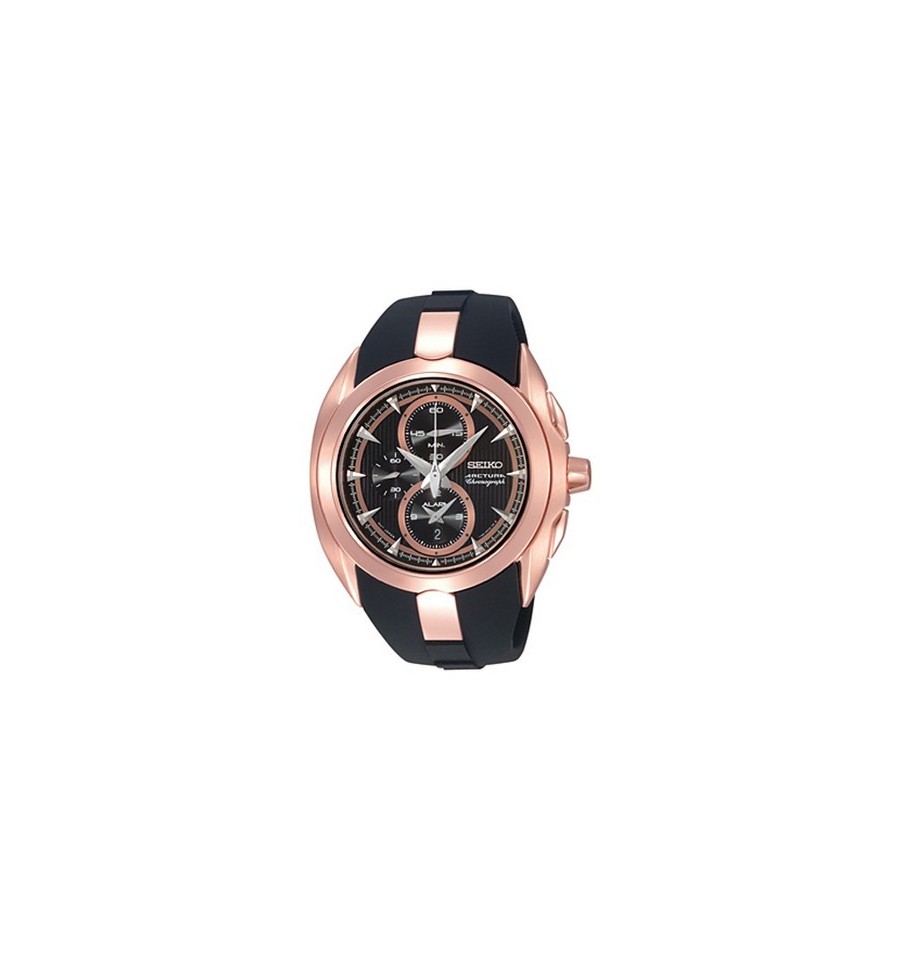 Acest ceas de mana barabatesc, Arctura SNAE10P1, produs de renumitul producator Seiko, are carcasa din otel inoxidabil auriu, cadarnul negru, curea din poliuretan, inchisa prin catarama, iar geamul este din safier rezistetnt la zgarieturi si antireflexiv. Ceasul este dotat cu functie cronograf. Mecanismul ceasului este pe baza de quatz.