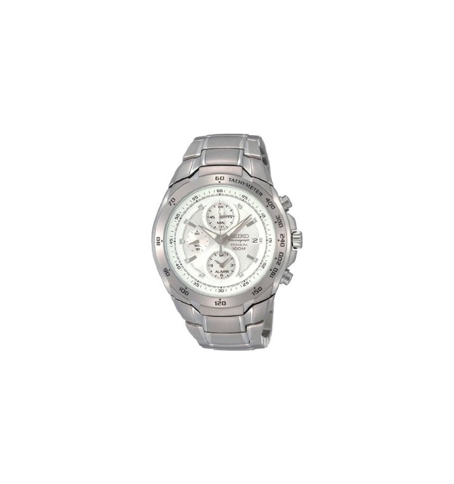 Acest ceas de mana barbatesc, Chronograph SNAB87P, produs de renumitul producator Seiko, are carcasa si bratara din titanium, un material foarte usor si rezistent, cadranul alb, geamul din cristal mineral, iar sistemul de inchidere este de tip deployant. Seiko SNAB87P1 este dotat cu functie cronograf, calendar, tahimetru si alarma. Mecanismul ceasului este pe baza de quartz.