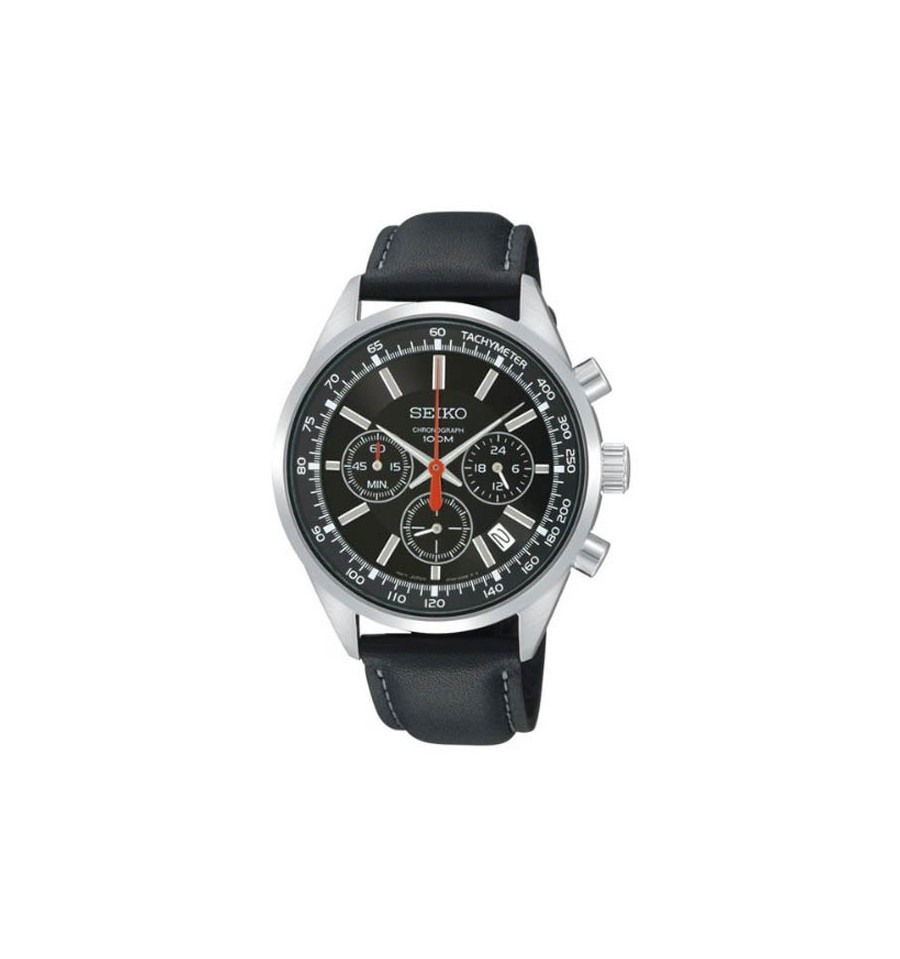 Acest ceas de mama barbatesc, Chronograph SSB037P2, produs de renumitul producator Seiko, are carcasa din otel inoxidabil arginitu, cadranul negru, geamul din cristal mineral hardlex, curea din piele naturala de culoare neagra inchisa prin catarama. Seiko SSB037P2 este dotat cu functie cronograf, calendar si tahimetru. Mecanismul ceasului este pe baza de quartz.