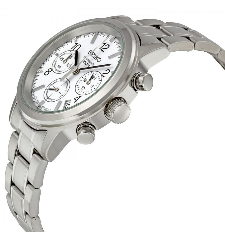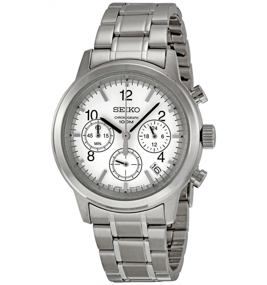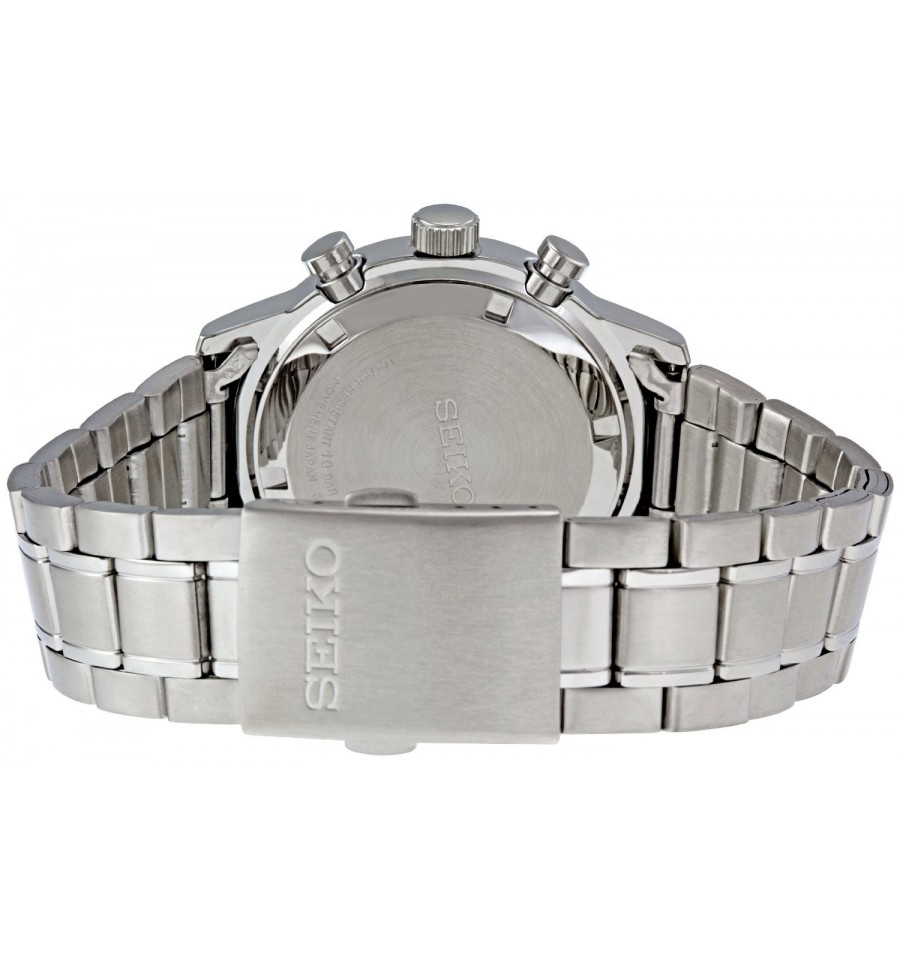 Acest ceas de mana barbatesc, Chronograph SSB001, produs de renumitul producator Seiko, are carcasa si bratara din otel inoxidabil argintiu, cadranul alb, geamul din cristal mineral hardlex, iar sistemul de inchidere este de tip fluture. Seiko SSB011 este dotat cu functie cronograf si calendar. Mecanismul ceasului este pe baza de quartz.