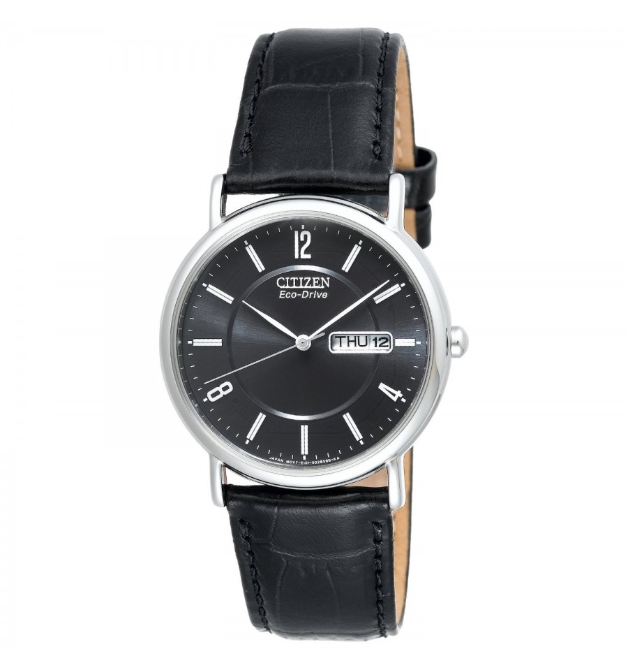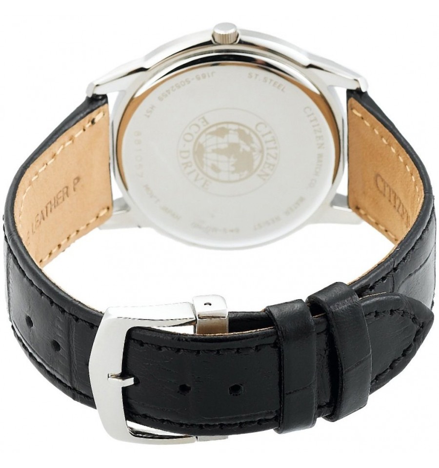 Acest ceas de mana barbati, Dress BM8240-03E, produs de renumitul producator japonez Citizen, are caracsa din otel inoxidabil de culare alba, curea din piele naturala de culoare neagra, inchisa prin catarama. Geamul este din cristal mineral, iar cadranul de culoare neagra. Ceasul converteste orice sursa de lumina fie naturala, fie artificiala, in energie utilizabila prin tehnologia Eco-Drive.