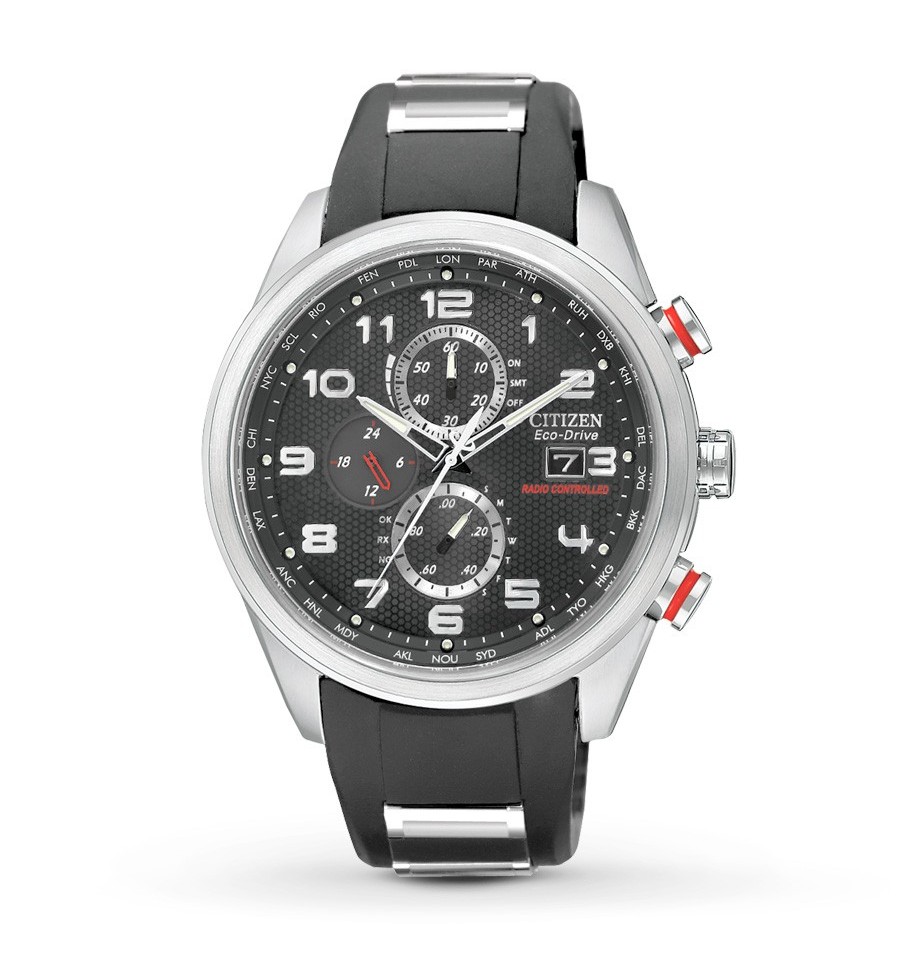 Acest ceas de mana barbatesc, editie limitata la 2500 bucati Perpetual Chrono A-T AT8030-00E, produs de renumitul Citizen, are precizie atomica cu acuratete radio controlata, sincronizindu-se prin radio cu staţiile de emisie care furnizează semnalul de calibrare; are carcasa din otel inoxidabil argintiu,bratara este o combinatie de polyruethane cu otel inoxidabil, cadranul negru, iar geamul este din safir antireflexiv. Ceasul este dotat cu functie cronograf,calendar perpetuu,indicator de energie. Ceasul converteste orice sursa de lumina fie naturala, fie artificiala, in energie utilizabila prin tehnologia Eco-Drive si are functie de avertizare de energie redusa.