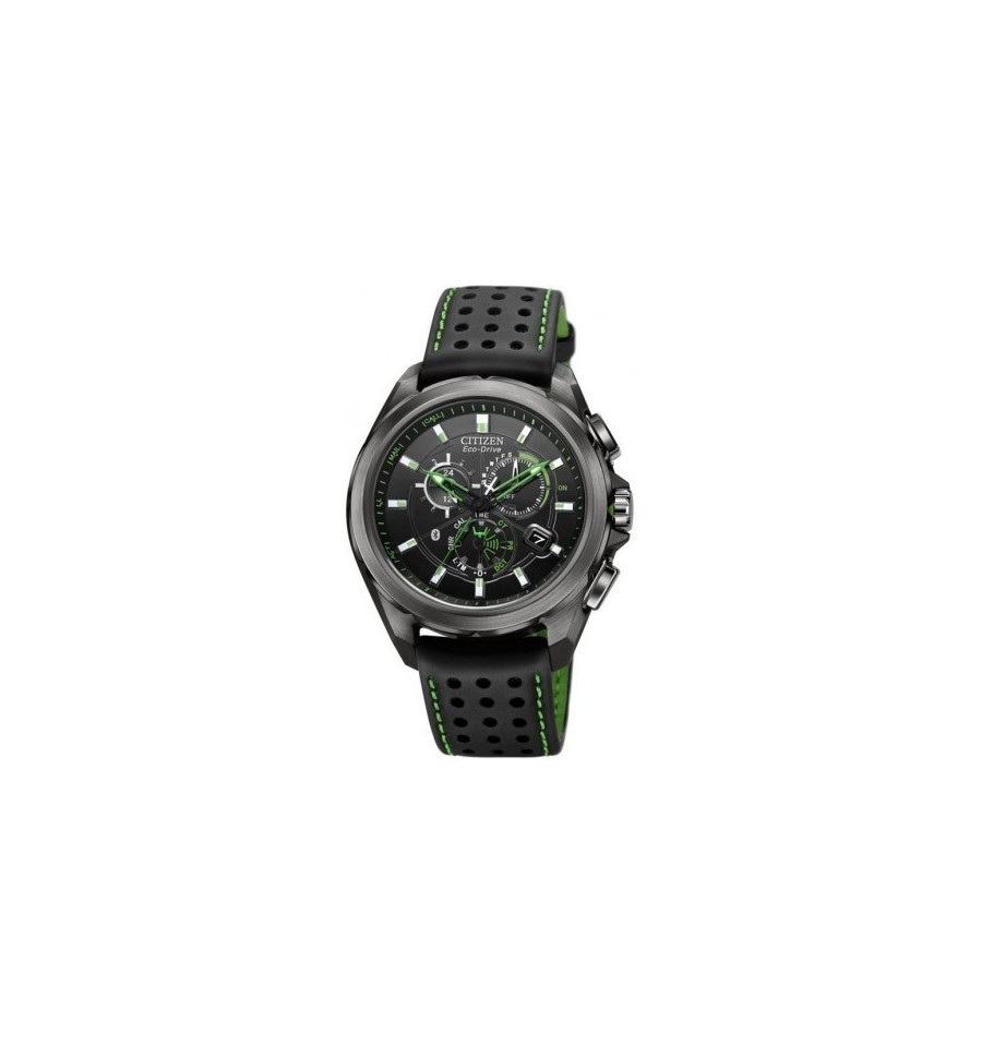 Acest ceas de mana barbatesc, Proximity AT7035-01E, produs de Citizen Watches, are carcasa din orel inoxidabil argintiu, curea din piele naturala de culoare neagra cu cusaturi verzi, inchisa prin catarama, iar cadranul negru cu albastru, geamul din cristal mineral anti-reflexiv.