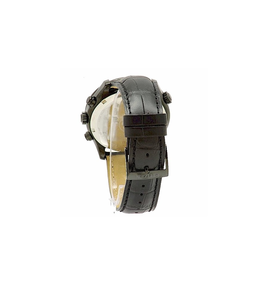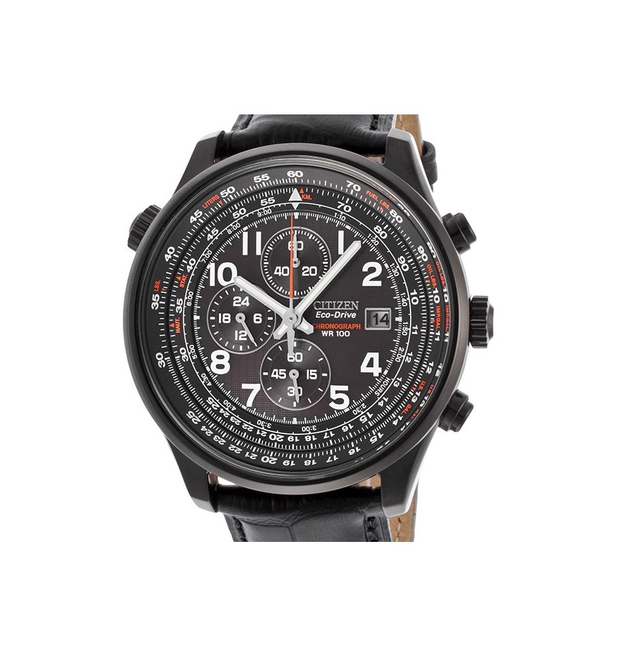 Acest ceas de mana barbatesc, Sport Chronograph CA0395-02E, produs de Citizen Watches, are carcasa din otel inoxidabil argintiu, cadranul negru, geamul din cristal mineral, bezel rotativ, curea din piele naturala de culoare neagra, inchisa prin catarama. Ceasul converteste orice sursa de lumina fie naturala, fie artificiala, in energie utilizabila prin tehnologia Eco-Drive si are functie de avertizare de energie redusa.