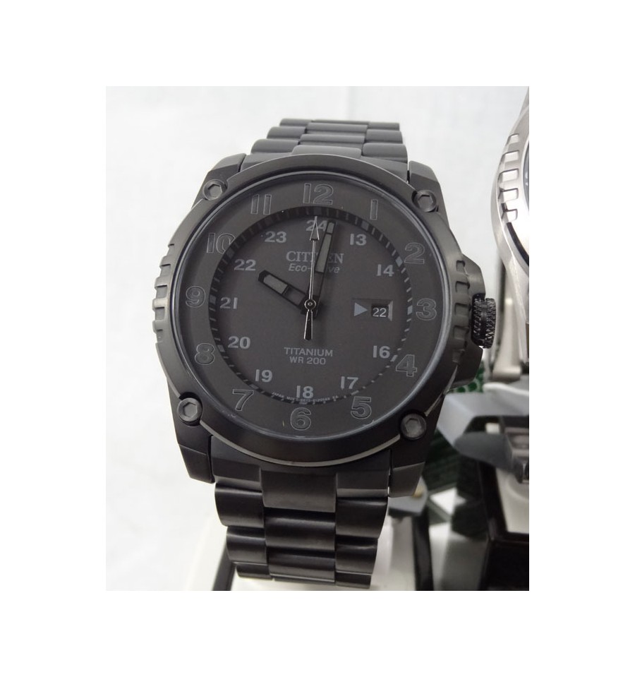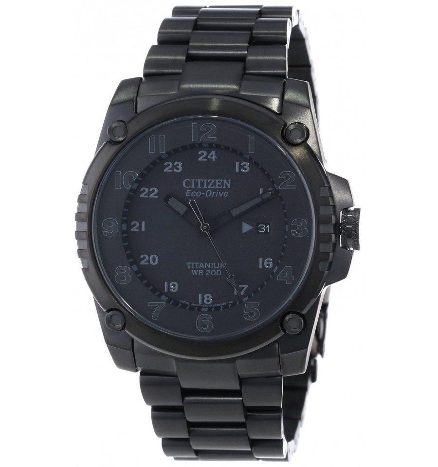 Acest ceas de mana barbatesc, Super TitaniumBJ8075-58E, produs de Citizen Watches, are carcasa si bratara din titan de culare negru, cadranul negru cu indicatoarele si cifrele luminoase. Ceasul converteste orice sursa de lumina fie naturala, fie artificiala, in energie utilizabila prin tehnologia Eco-Drive si are functie de avertizare de energie redusa.