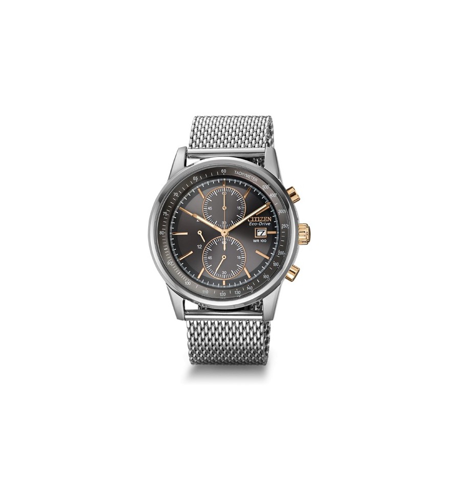 Acest ceas de mana barabtesc, Mesh Chronograph CA0336-52H, produs de renumitul Citizen Watches, are carcasa si bratara din otel inoxidabil argintiu, cadranul maro, geamul din cristal mineral, iar sistemul de inchidere care se gliseaza.