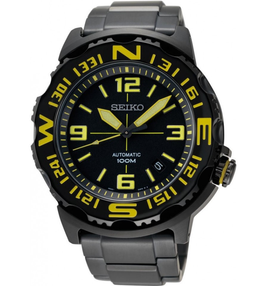 Ceas de mana barbatesc original Seiko Scuba Diver SEIKO NEW BLACK MONSTER SRP449, produs de reumitul Seiko Watches Corp, are carcasa si bratara din otel inoxidabil placat negru, cadranul negru si luminos, bezelul rotativ, iar mecanismul automatic 4R35. Geamul este din cristal mineral hardlex in forma convexa pentru a minimaliza reflexia. Seiko SRP449 are mecanismul automatic cu 23 Jewels.