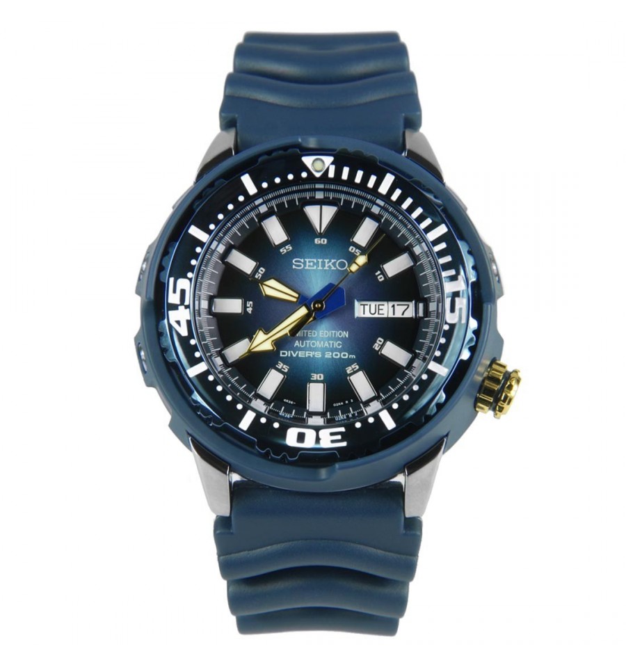 Ceas de mana barbatesc original Seiko Scuba Diver SEIKO LIMITED EDITION MONSTER SRP453, produs de reumitul Seiko Watches Corp, are carcasa din otel inoxidabil argintiu, cadranul albastru si luminos, bezelul rotativ, iar mecanismul automatic 4R36..Geamul este din cristal mineral hardlex in forma convexa pentru a minimaliza reflexia. Seiko SRP453 are mecanismul automatic cu 24 Jewels.