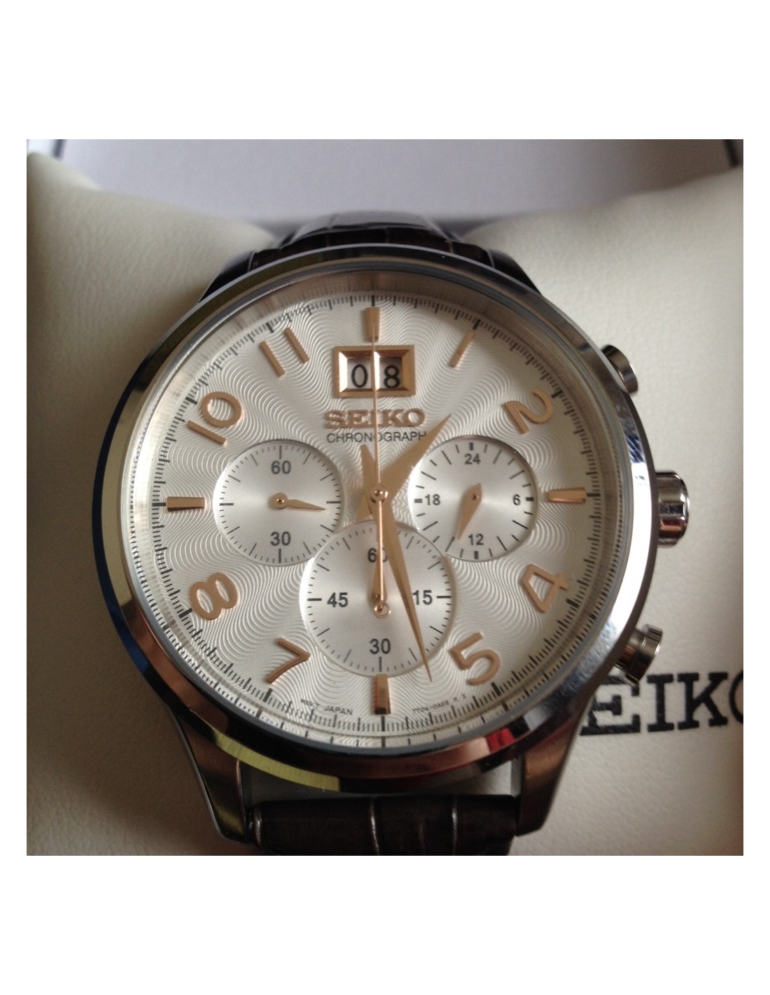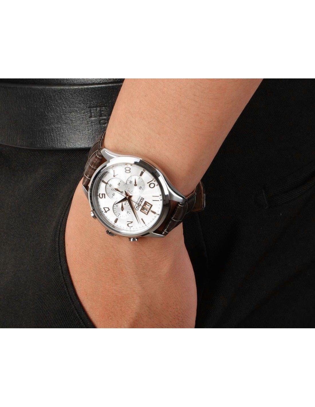 Acest ceas de mana barbatesc, Seiko 5 model SRPA26J1,cu mecanism automatic japonez(model made in Japan), are carcasa si bratara din otel inoxidabil argintiu, cadranul alb de 42mm si este 100m water resistant.
