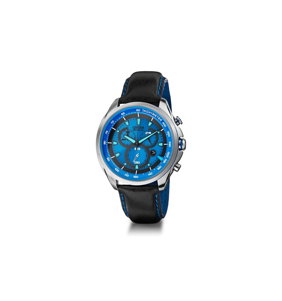 Acest ceas de mana barbatesc, WDR AT2180-00L, produs de renumitul Citizen Watches, are carcasa din otel inoxidabil negru, cadranul negru cu accente albastre, geamul din cristal mineral, curea din piele in doua nuante, inchisa prin catarama.