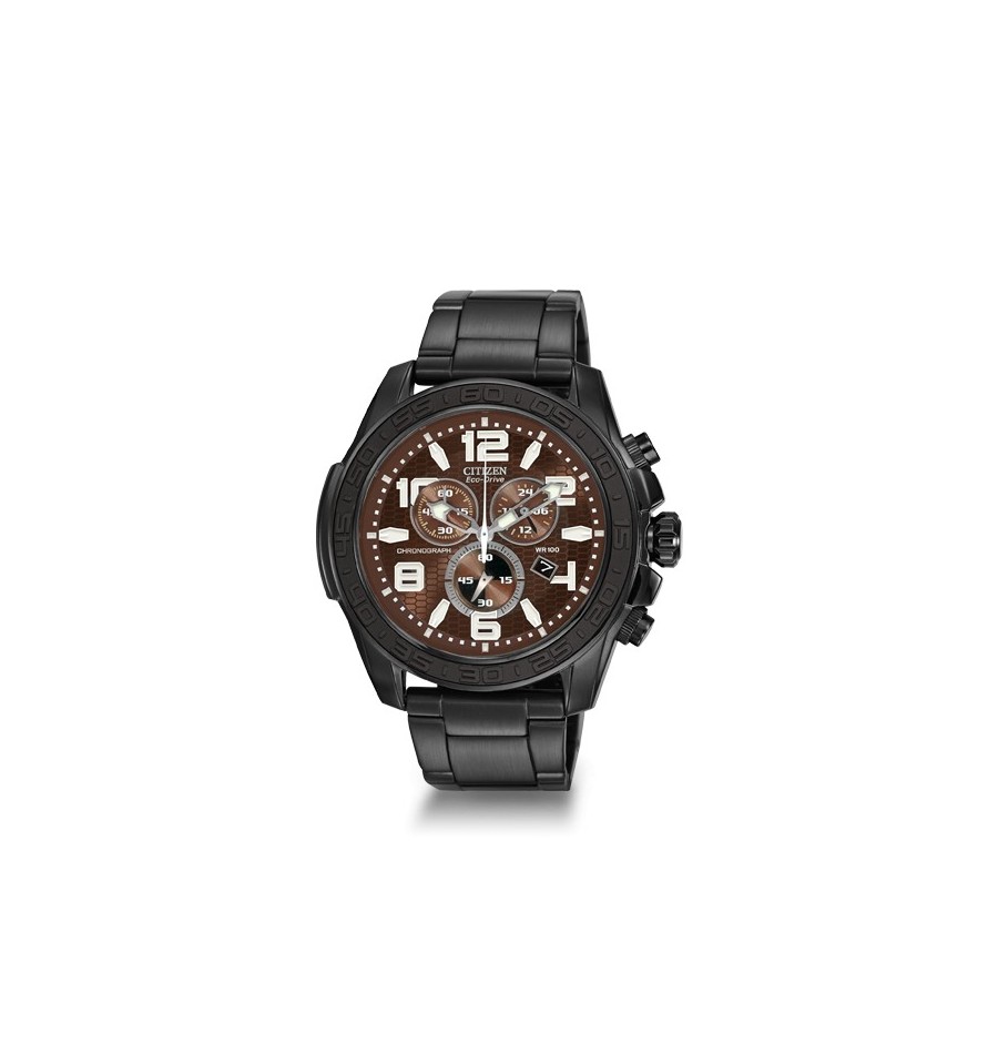 Acest ceas de mana barbatesc, BRT AT2275-56X, produs de renumitul Citizen Watches, are carcasa si bratara din otel inoxidabil negru, bezel decorativ, cadranul maro, geamul din cristal mineral, iar sistemul de inchidere este de tip fluture cu buton de siguranta.