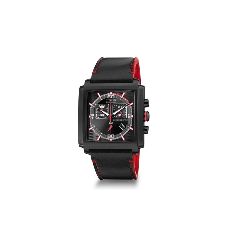 Acest ceas de mana barbatesc original, MFD AT2215-07E, produs de Citizen Watches, are carcasa din otel inoxidabil argintiu, cadranul negru cu accente rosii, geamul din cristal mineral, curea din piele in doua nuante, inchisa prin catarama.