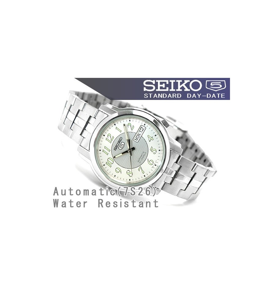Ceas de mana original Seiko 5 automatic SNKL89K1 de la vestita firma japoneza SEIKO Watches cu mecanism 7S26 cu 21 Jewels- rubine, rezistent la apa 30m, arata data si ziua in engleza sau franceza, carcasa si bratara sunt din otel inox.Ceasul vine complet cu cutie, manual de utilizare si un an garantie.
