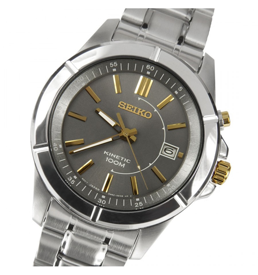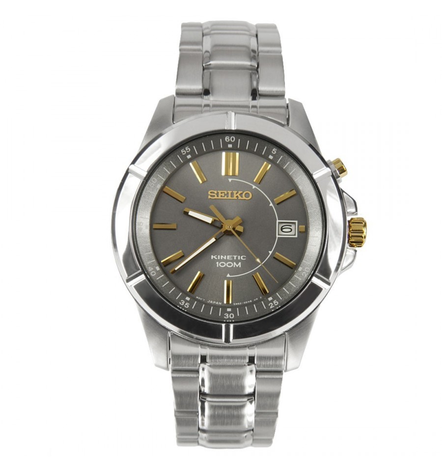 Acest ceas de mana barbatesc, SKA543P1, produs de Seiko Watches, are carcasa si bratara din otel inoxidabil, cadranul gri, geamul din cristal mineral rezistent la zgarieturi, iar sistemul de inchidere este de tip deployannt cu buton. Mecanismul este kintetic.