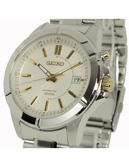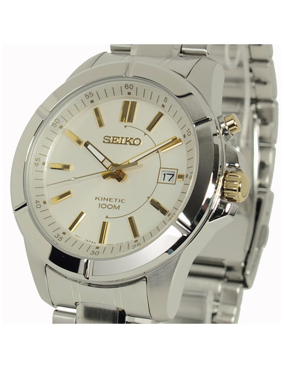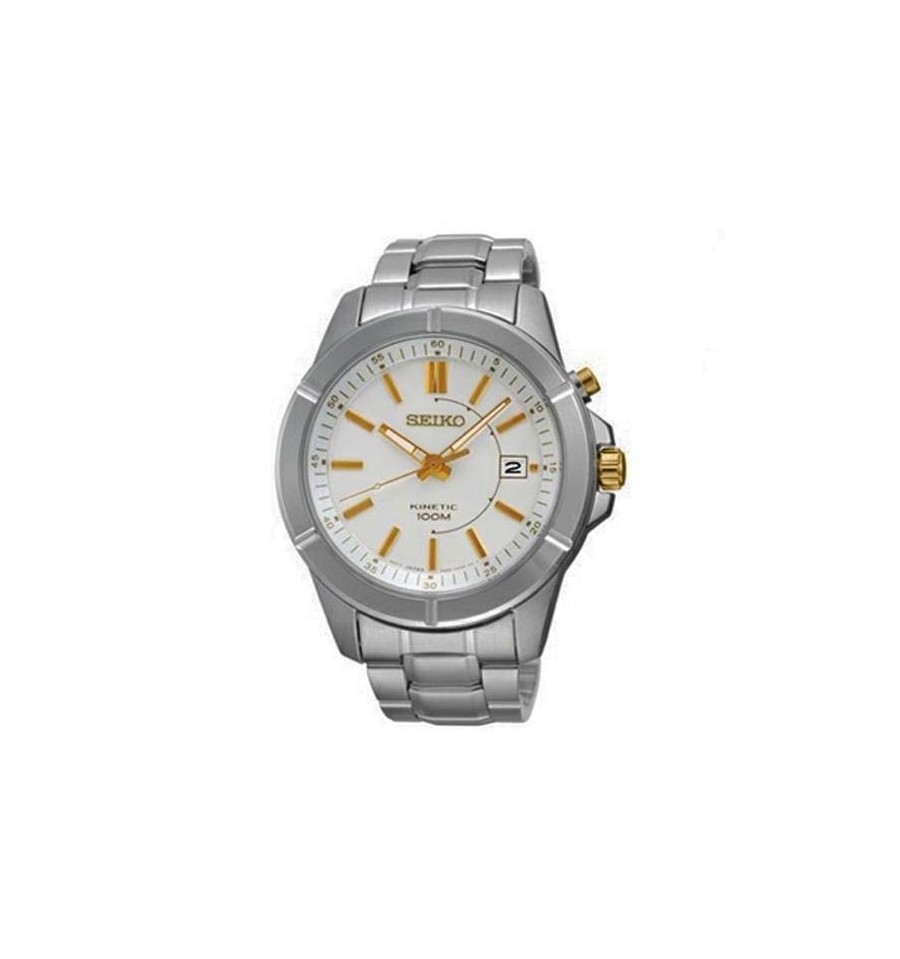 Acest ceas de mana barbatesc, SKA541P1, produs de Seiko Watches, are carcasa si bratara din otel inoxidabil, cadranul alb, geamul din cristal mineral rezistent la zgarieturi, iar sistemul de inchidere este de tip deployannt cu buton. Mecanismul este kintetic.