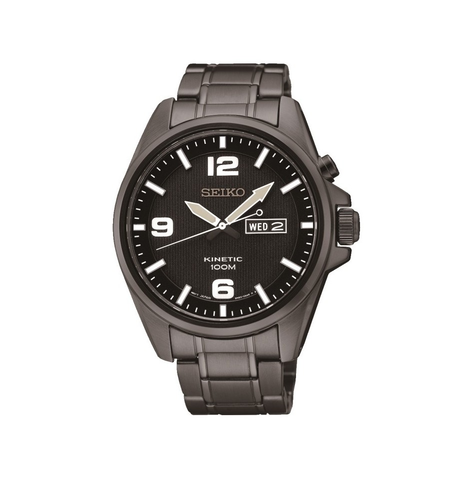 Acest ceas de mana barbatesc, SMY139P1, produs de Seiko Watches, are carcasa si bratara din otel inoxidabil, cadranul negru, geamul din cristal mineral rezistent la zgarieturi, iar sistemul de inchidere este de tip deployannt cu buton. Mecanismul este kintetic.