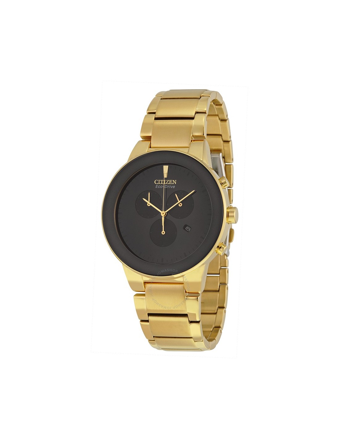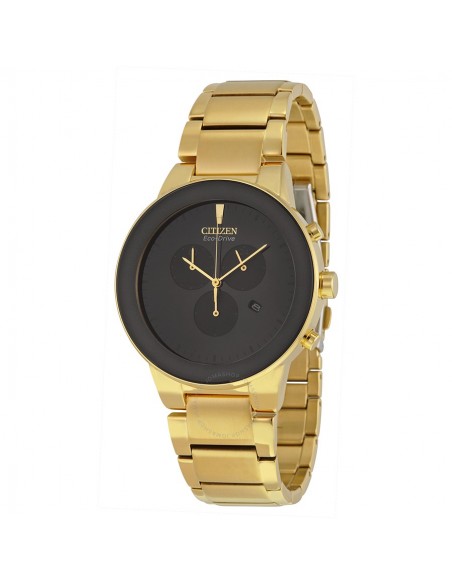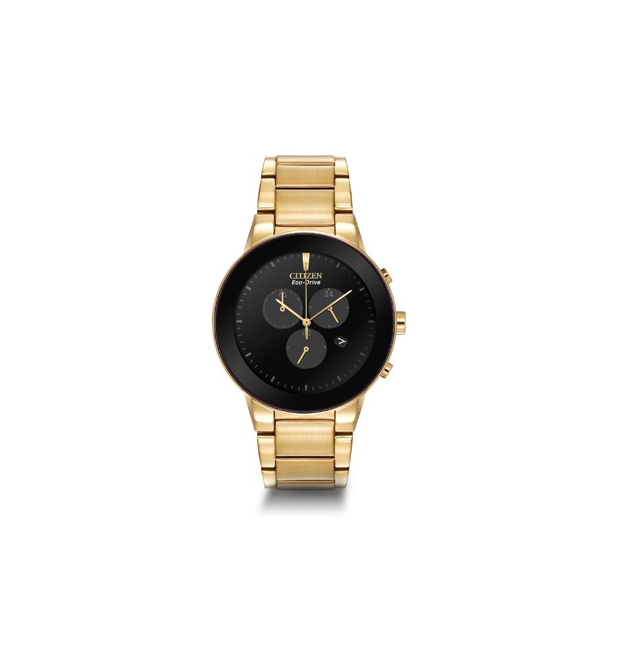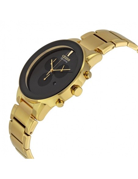 Ceasul de mana unisex original, Axiom AT2240-51E, produs de renumitul Citizen Watches, are carcasa si bratara din otel inoxidabil in nuante aurii cadranul si bezelul negru, geamul din cristal mineral, iar sistemul de inchidere este de tip deployant. Ceasul converteste orice sursa de lumina fie naturala, fie artificiala, in energie utilizabila prin tehnologia Eco-Drive.