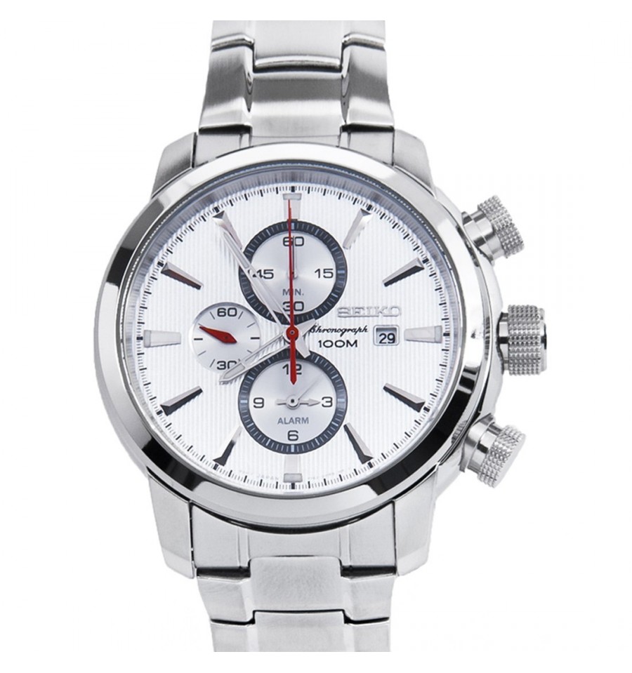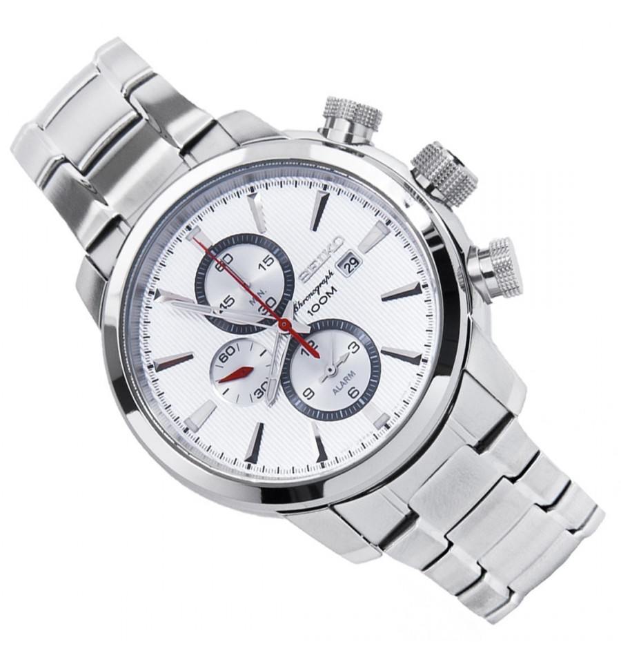 Acest ceas de mana barbatesc, Chronograph SNAF43P1, produs de Seiko Watches, are carcasa si bratara din otel inoxidabil placat ionic negru, geamul din cristal mineral intarit (hardlex), icardanul alb, iar sistemul de inchidere este de tip fluture. Mecanismul este pe baza de quartz.