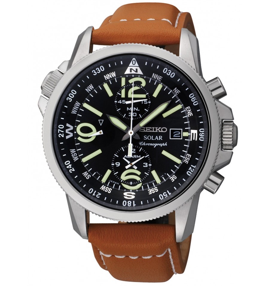 Acest ceas de mana barbatesc, SSC081P1, produs de Seiko Watches, are carcasa din otel inoxidabil, cadranul negru, geamul din cristal mineral, curea din piele maro, inchisa prin catarama. Mecanimsul ceasului este solar si nu necesita baterie.