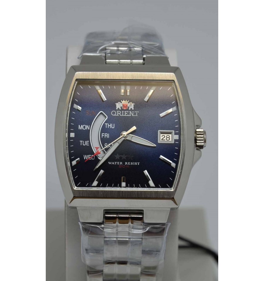 Ceas de mana barbatesc de la renumita firma Japoneza Orient. Modelul din gama three star FFPAB002DF este un ceas clasic reusit de 35,5x37,5mm indicatore fosforescente.Are un mecasnim automatic performant si este rezistent la 50m apa. Vine cu garantie de doi ani, factura si cutie originala cu toate actele.