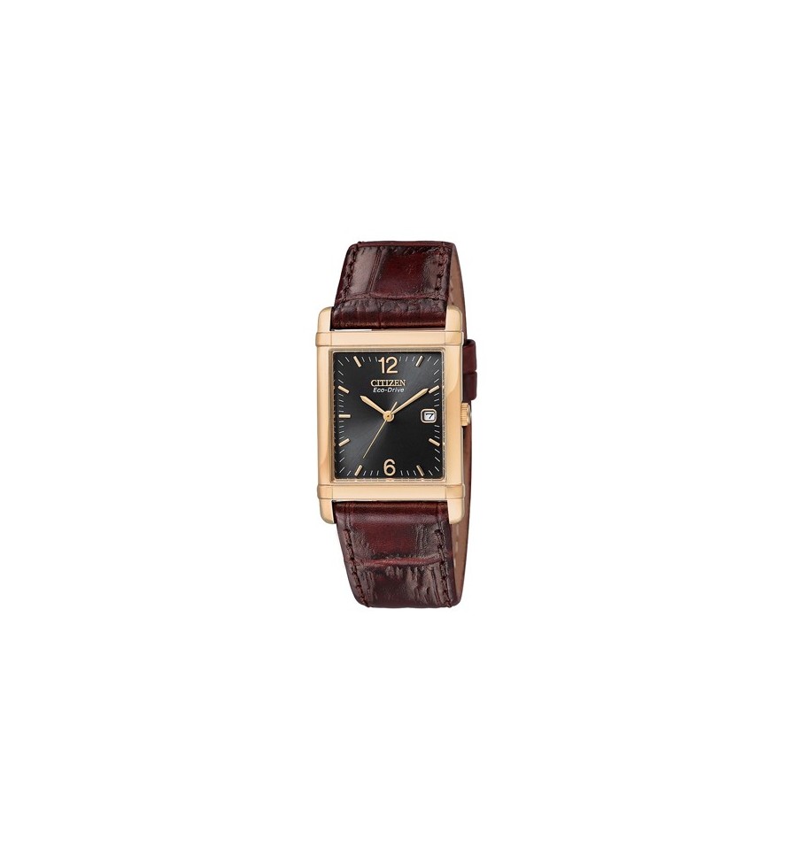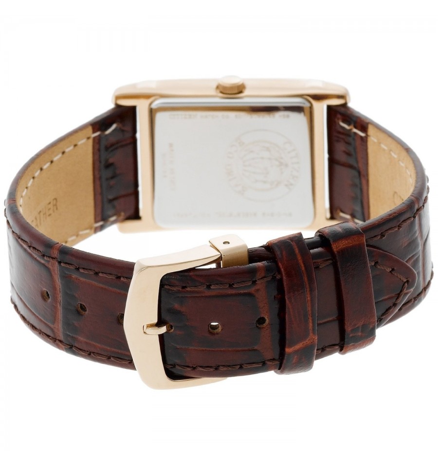 Acest ceas de mana barbatesc, Dress BW0203-01E, produs de renumitul producator japonez Citizen, are carcasa din otel inoxidabil auriu, curea din piele naturala de culoare maro, inchisa prin catarama. Geaml este din cristal mineral, iar cadranul drepunghiular negru. Ceasul converteste orice sursa de lumina fie naturala, fie artificiala, in energie utilizabila prin tehnologia Eco-Drive.