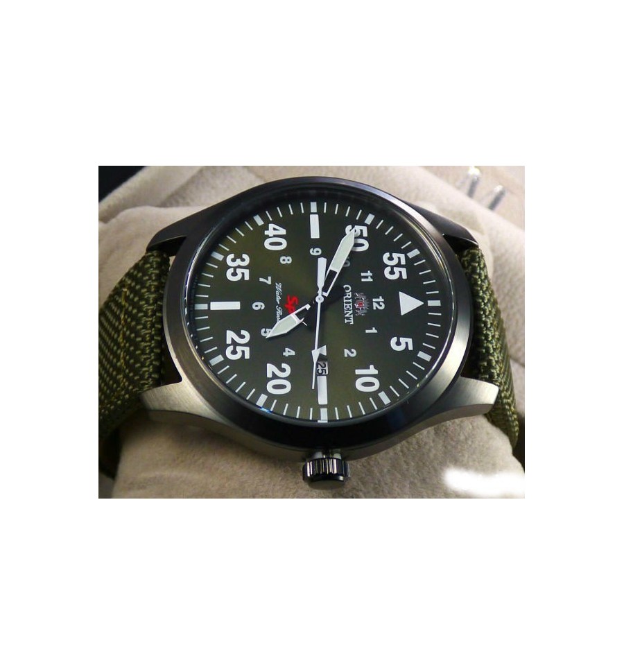 Ceas de mana barbatesc Orient Sport model militar FUNG2004F0 de 42mm vine cu mecanism quartz, geam cristal mineral, afisaj cu cifre arabe si indicatoare fosforescente.