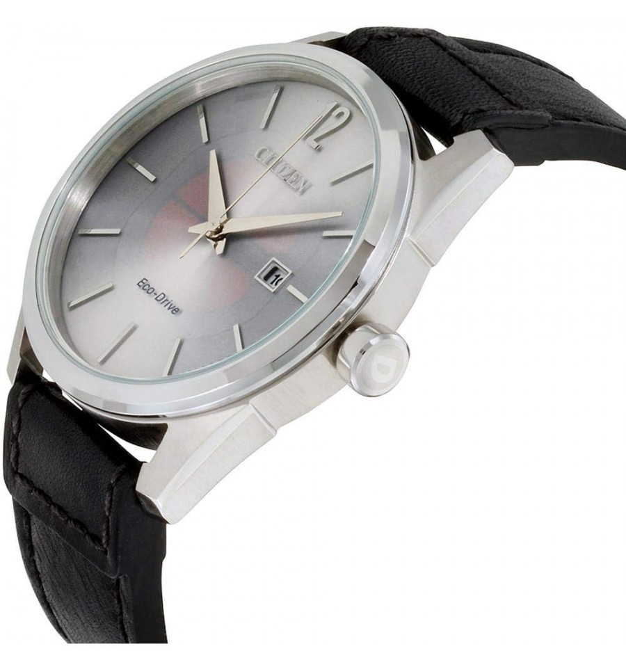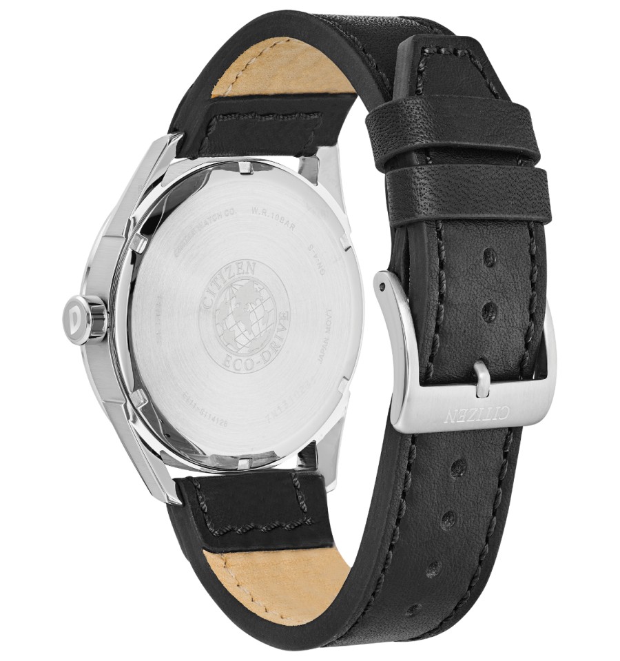 Ceas de mana barbatesc original Citizen Eco Drive CTO Check This Out BM7410-01A este un ceas japonez cu mecanism solar de 42mm cu curea de piele neagra si indicator data.