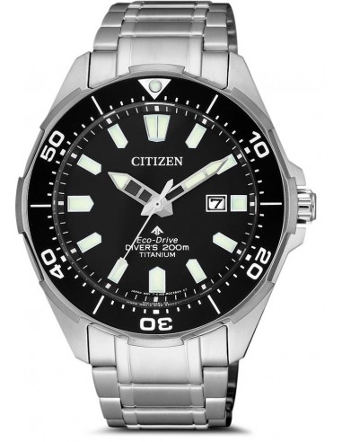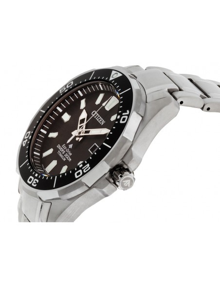 Ceas de mana barbatesc Citizen Eco Drive Promaster Diver BN0200-56E este un ceas de 44mm, cu insertii fosforescent, cu carcasa si bratara din titan.