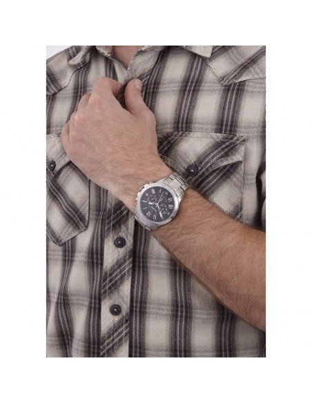 Ceas de mana barbatesc Fossil Grant FS4736, este un ceas fashion quartz cu mecanism japonez myiota JS25 cu cadran negru si diametru de 44mm din otel inoxidabil. Este un ceas analog cu geam cristal mineral si 50m WR.