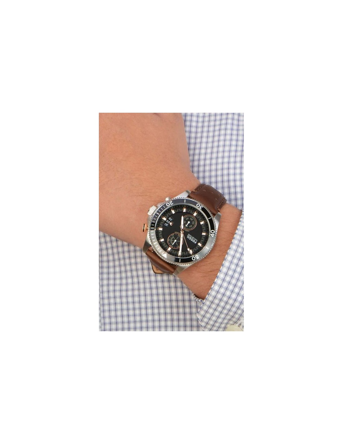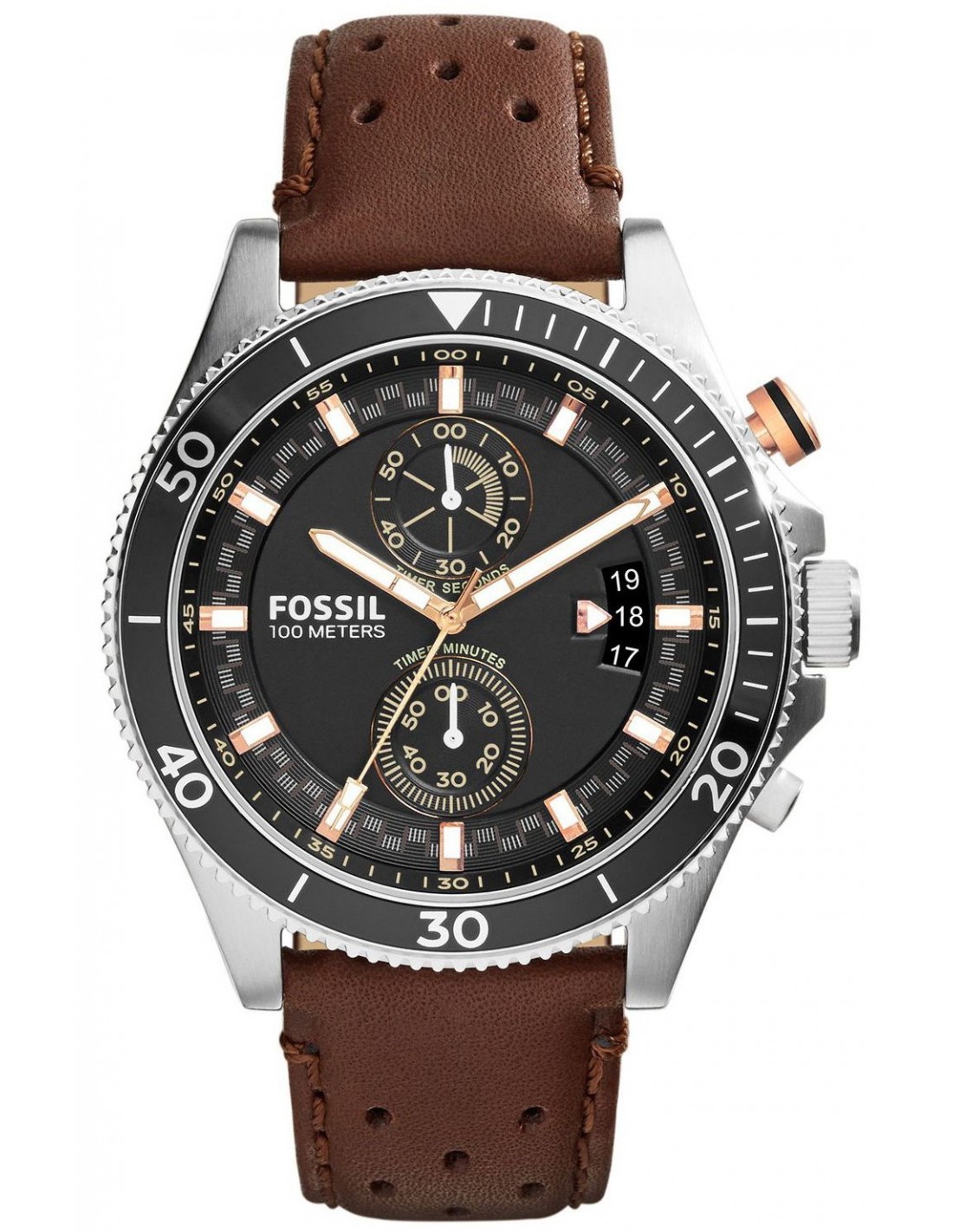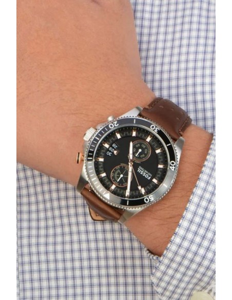 Ceas de mana barbatesc Fossil Wakefield CH2944, este un ceas fashion quartz cu mecanism japonez myiota JS25 cu cadran negru si diametru de 45mm, curea de piele maro. Este un ceas analog cu geam cristal mineral si 100m WR.
