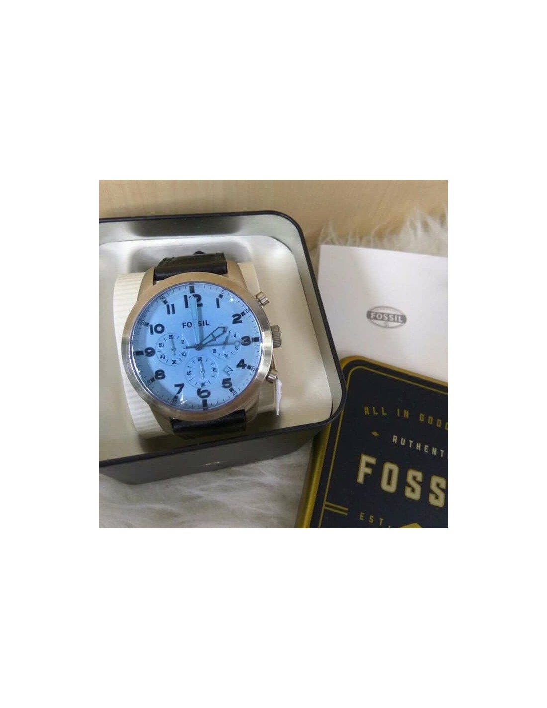 Ceas de mana barbatesc Fossil Pilot 54 FS5162, este un ceas fashion quartz cu mecanism japonez myiota JS25 cu cadran albastru si diametru de 44mm, curea de piele neagra. Este un ceas analog cu geam cristal mineral si 50m WR.