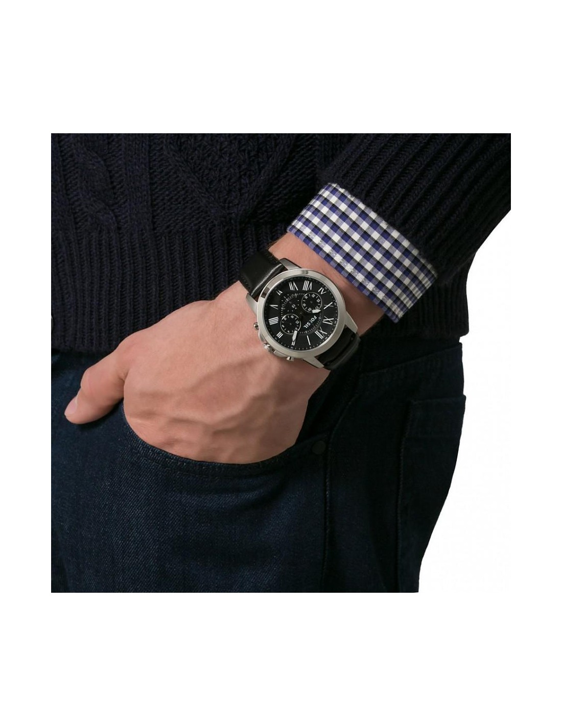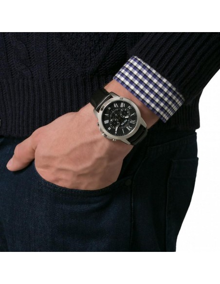 Ceas de mana barbatesc auriu Fossil Buchanan FS5103, este un ceas fashion quartz cu mecanism japonez myiota JS25 cu cadran arginitiu si diametru de 41mm, curea de piele maro si WR50m