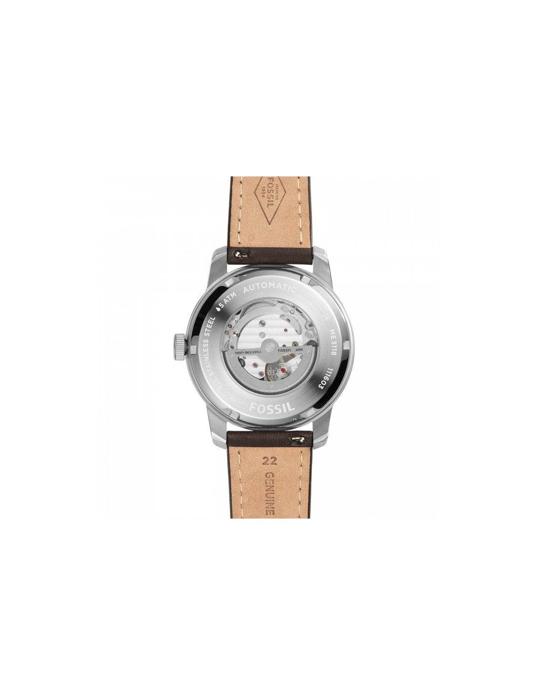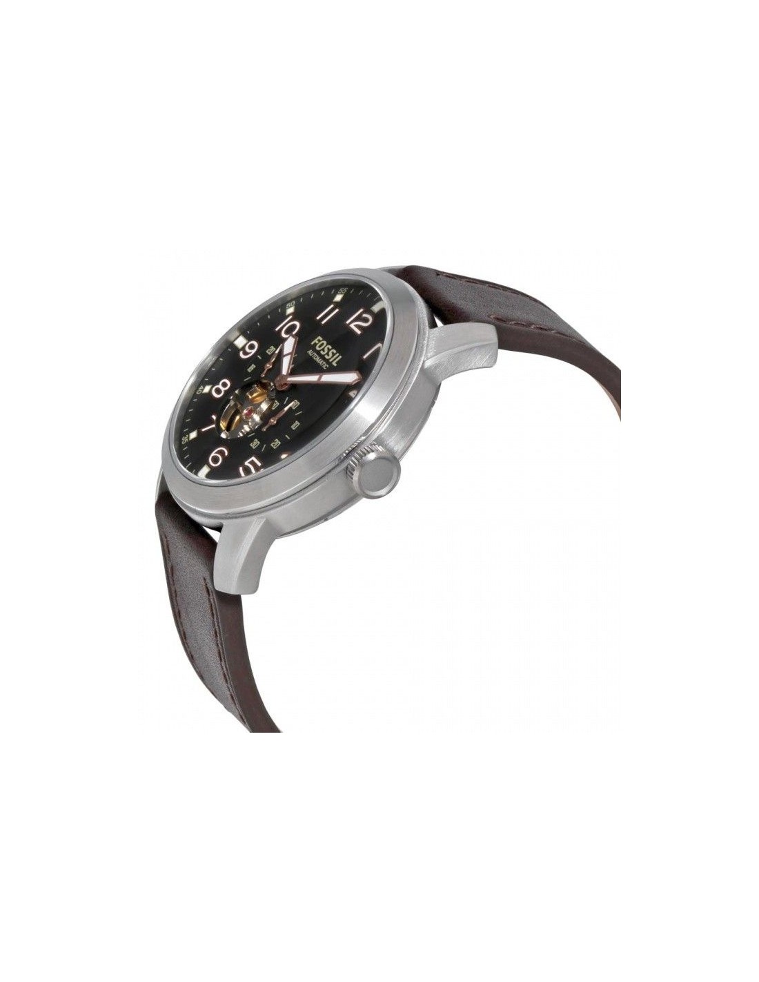 Ceas de mana barbatesc Fossil Pilot 54 ME3118, este un ceas fashion automatic open heart cu mecanism japonez, cadran negru, diametru de 44mm, curea de piele maro si WR50m. Este un ceas analog cu geam cristal mineral si 50m WR.