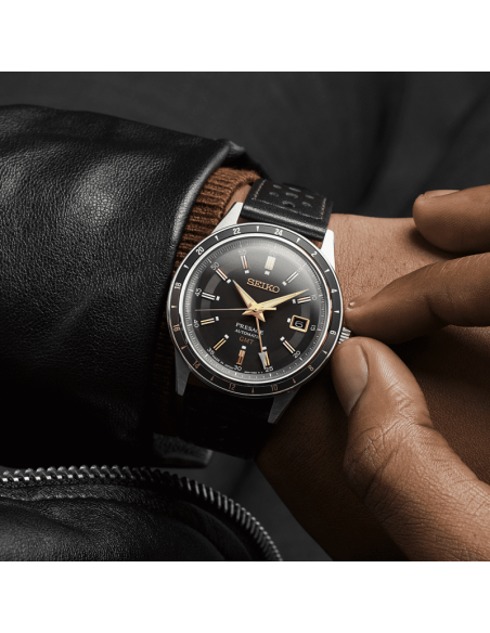 Ceas de mana original Seiko Presage automatic GMT SSK013K1 SSK013 de 40,8 mm si 100m vine cu un mecanism japonez automatic calibru 4R34. Carcasa din otel inoxidabil si geamul din hardlex.