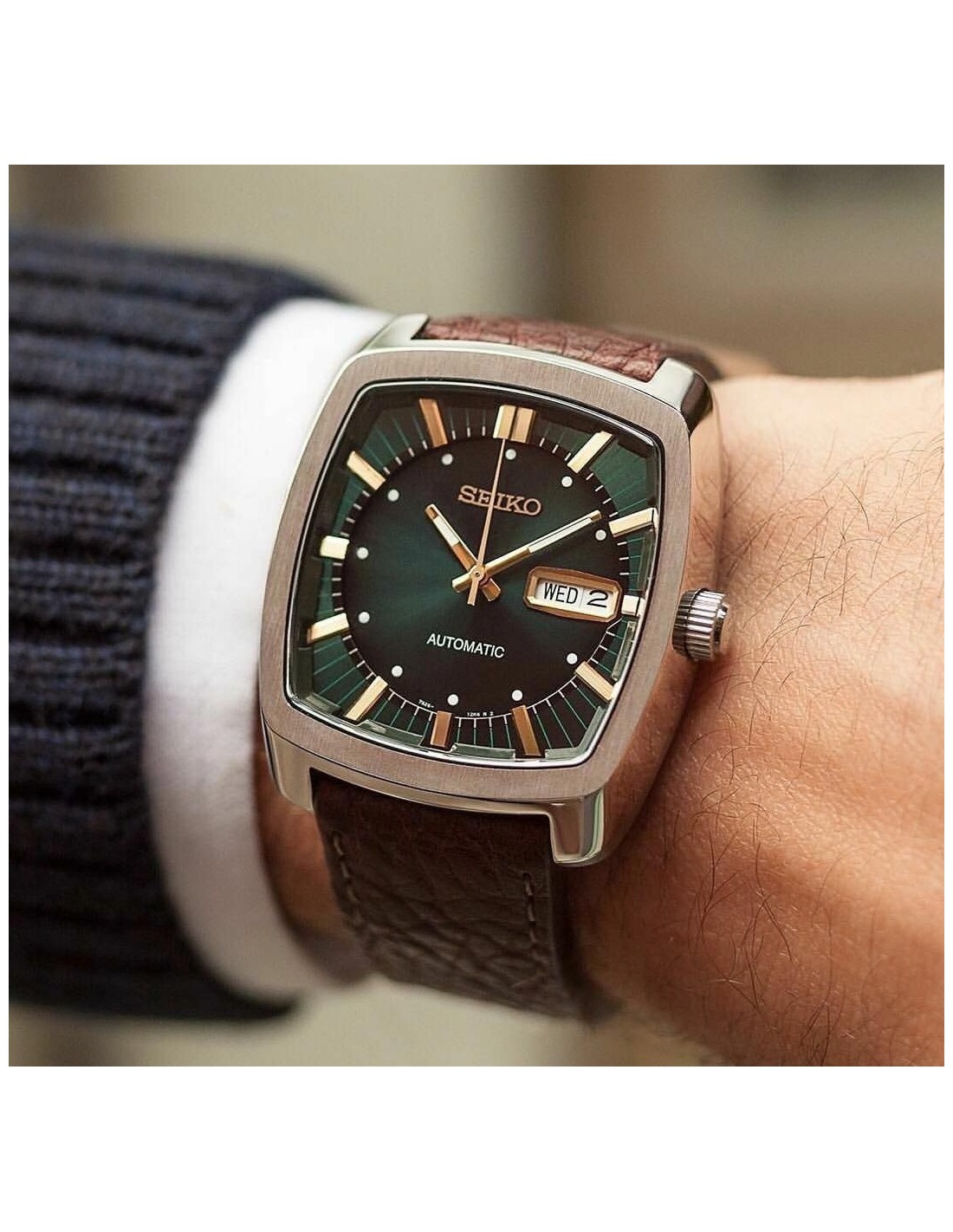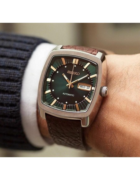 Ceas de mana dreptunghiular original Seiko Recraft classic automatic 50m SNKP27 de 39,5 mm, mecanism japonez automatic calibru 7s26. Carcasa din otel inoxidabil si geamul din hardlex.