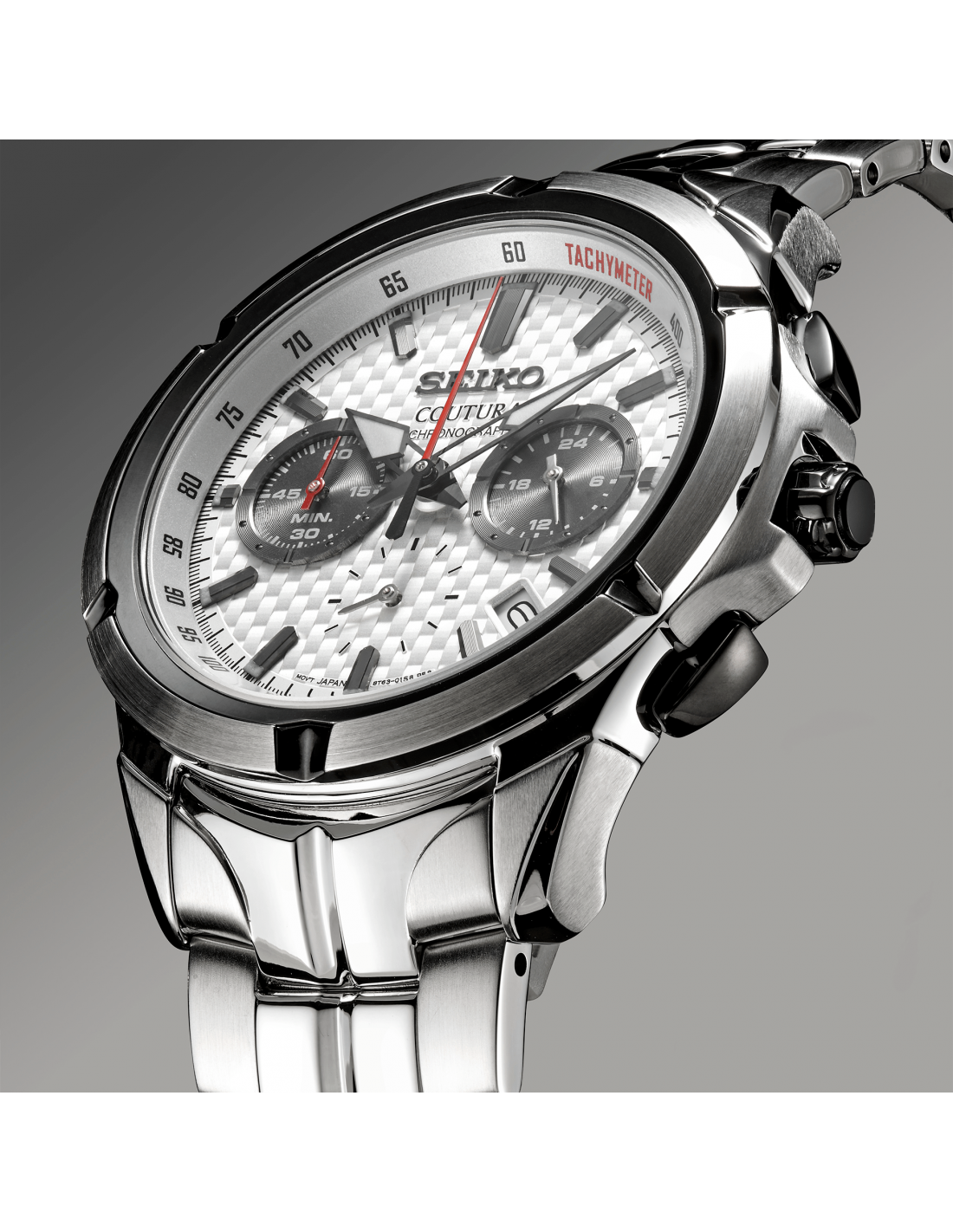 Acest ceas de mana barbatesc, Coutura SNQ124, produs de renumitul producator japonez Seiko, are carcasa si bratara din otel inoxidabil in doua nuante, cadranul argintiu, coroana din cabochon, iar geamul din safir.