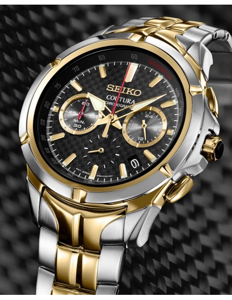 Acest ceas de mana barbatesc, Coutura SNQ124, produs de renumitul producator japonez Seiko, are carcasa si bratara din otel inoxidabil in doua nuante, cadranul argintiu, coroana din cabochon, iar geamul din safir.