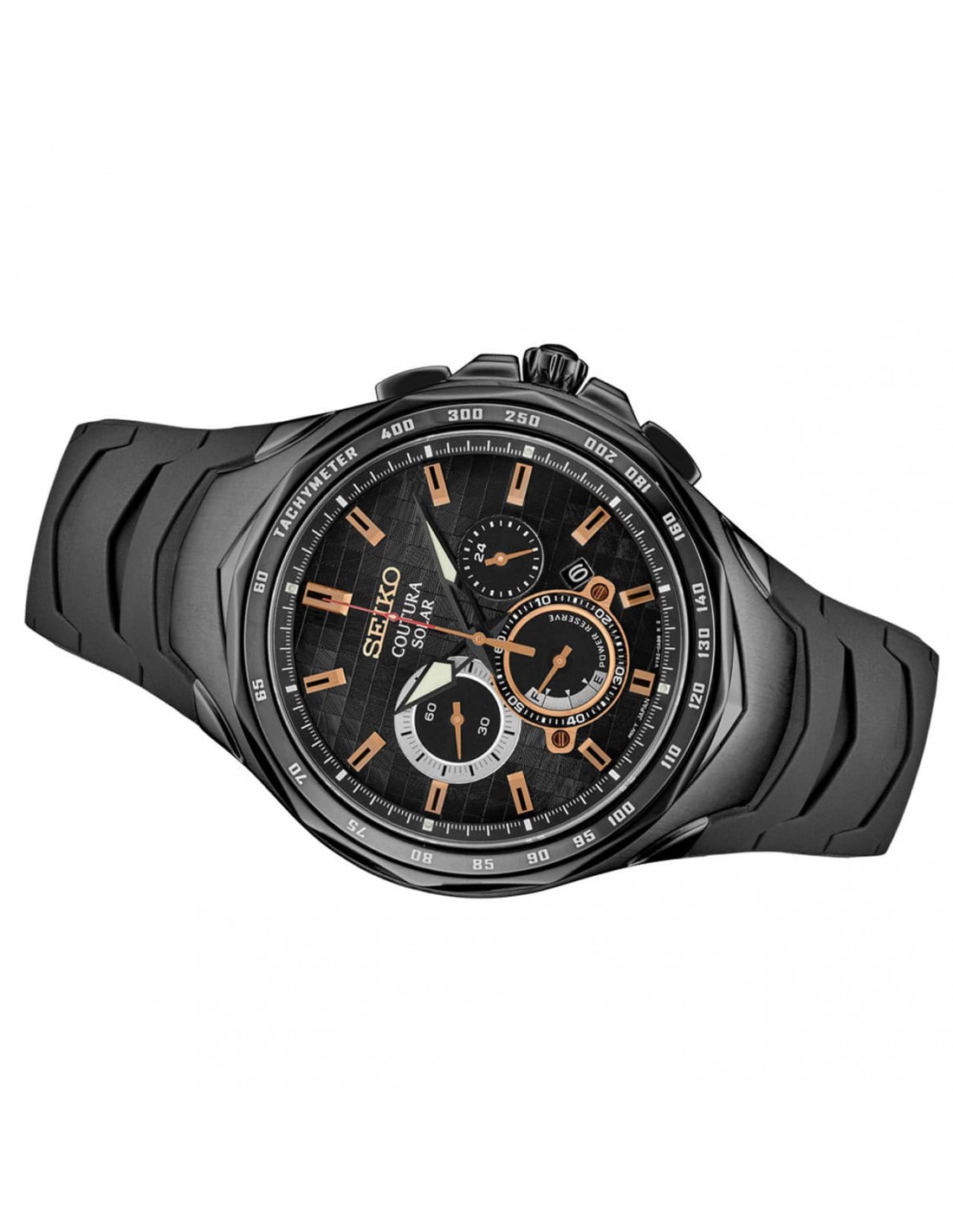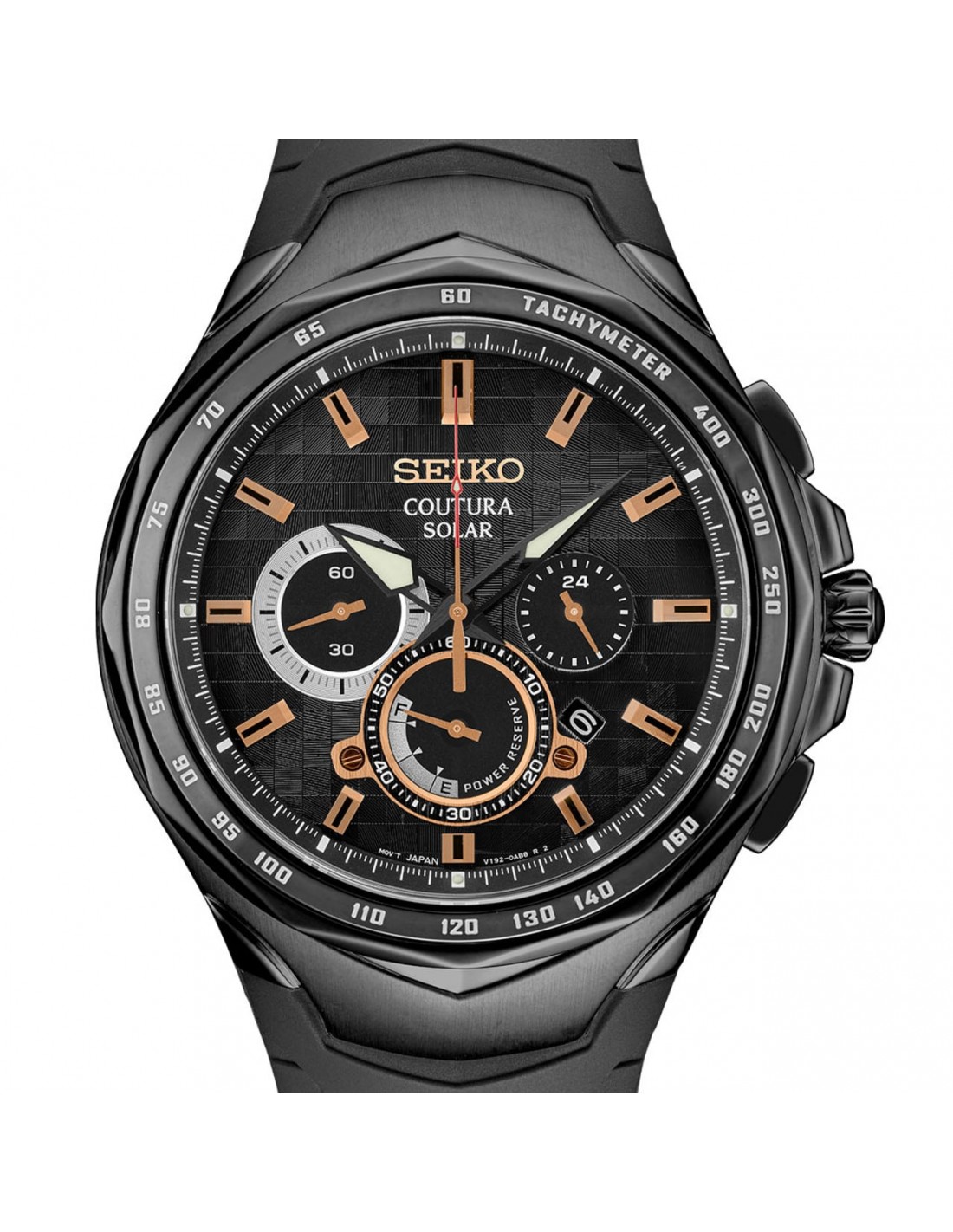 Ceas de mana barbatesc Seiko Coutura Solar Perpetual Alarma Chronograph SSC376 SSC376P1 este un ceas cu mecanism quartz,solar japonez V198, diametru de 44mm si geam safir cristal.
