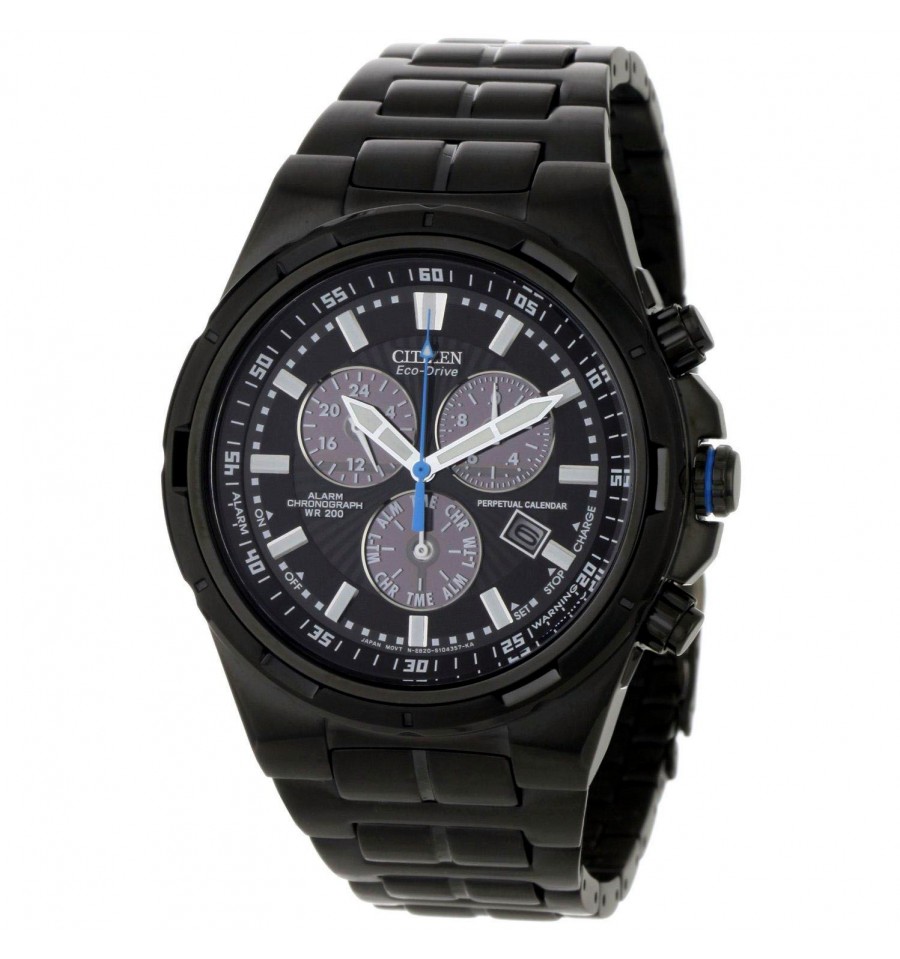 Acest ceas de mana barbatesc, Perpetual Calendar Chronograph BL5435-58E, produs de renumitul Citizen, are carcasa si bratara din otel inoxidabil placat ionic negru, cadranul negru cu functie cronograf, iar sistemul de inchidere este de tip fluture.