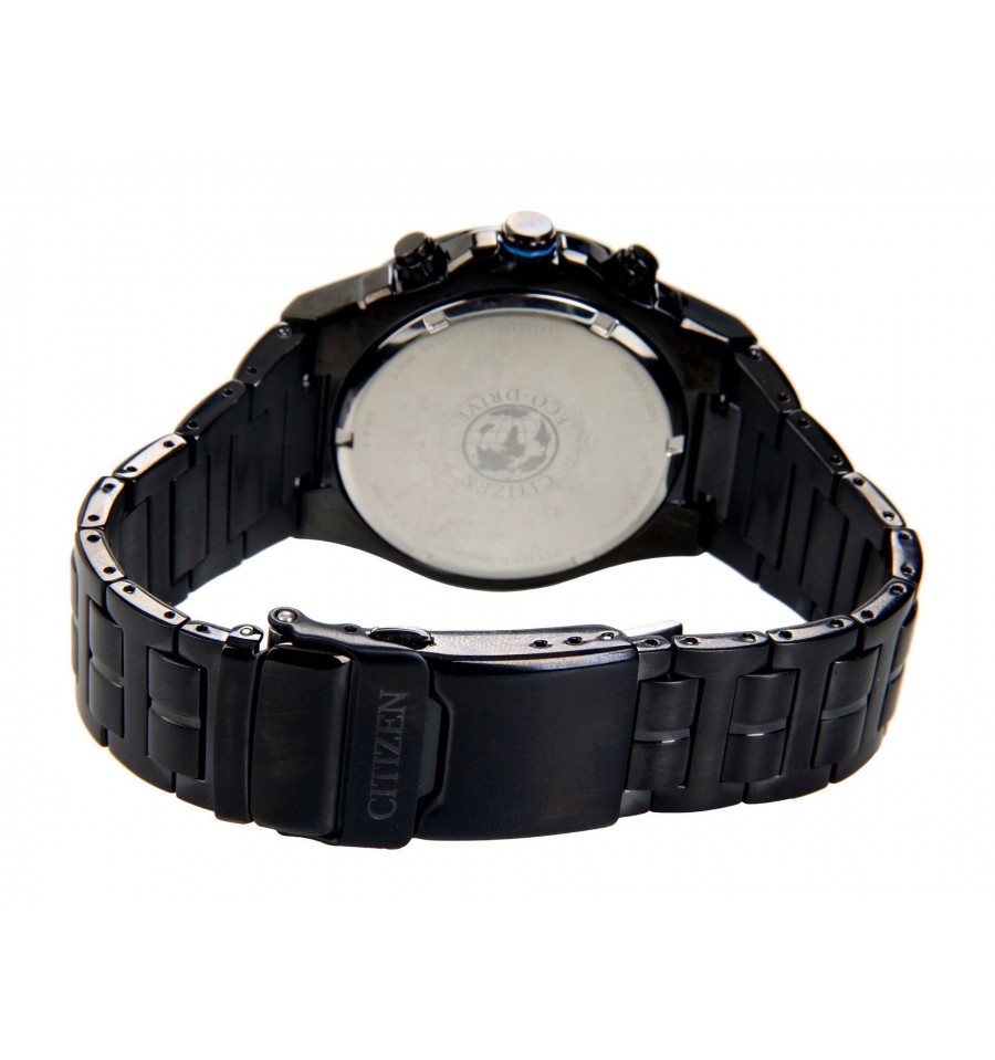 Acest ceas de mana barbatesc, Perpetual Calendar Chronograph BL5435-58E, produs de renumitul producator japonez Citizen, are carcasa si bratara din otel inoxidabil placat ionic negru, cadranul negru cu functie cronograf, calendar perpetruu autoreglabil pana in anul 2100, dual time, iar sistemul de inchidere este de tip fluture. Geamul este din cristal mineral rezistent la zgarieturi. Ceasul converteste orice sursa de lumina fie naturala, fie artificiala, in energie utilizabila prin tehnologia Eco-Drive, are 270 zile rezerva energie si indicator rezerva energie.