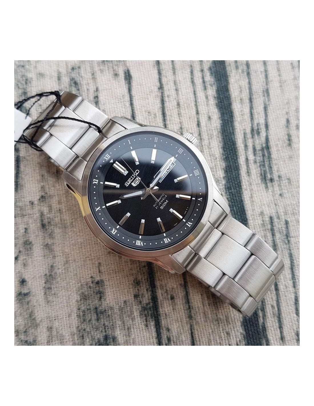 Ceasul de mana barbatesc, Seiko 5 Watches Automatic SNKP17K1 SNKP17 de 42,3mm, analog cu design casual-sport are carcasa si bratara din otel inoxidabil, cadranul negru, iar mecanismul automatic cu 21 Jewels.