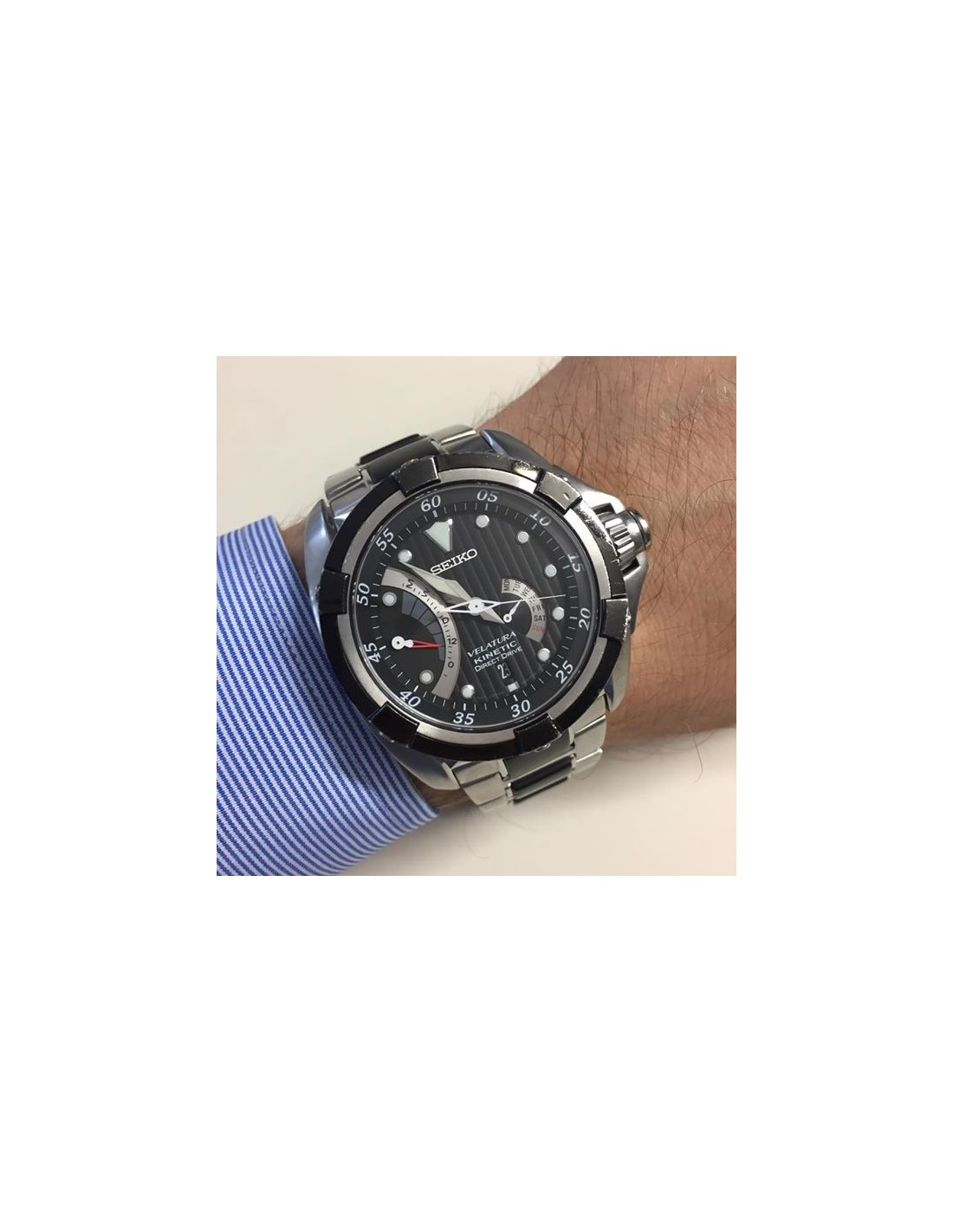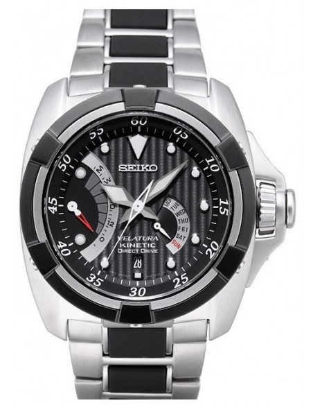 Ceas de mana barbatesc original Seiko Velatura Kinetic Direct Drive SRH005P1 este un ceas cu un design modern o linie autentica marca Seiko Watches. Datorita mecanismul Kinetic acest ceas nu are nevoie de baterie. Odata incarcat ,ceasul ne indica puterea bateriei in timp real cu ajutorul indicatorului Direct Drive. Are puterea de a sta incarcat aprox. 1 luna.