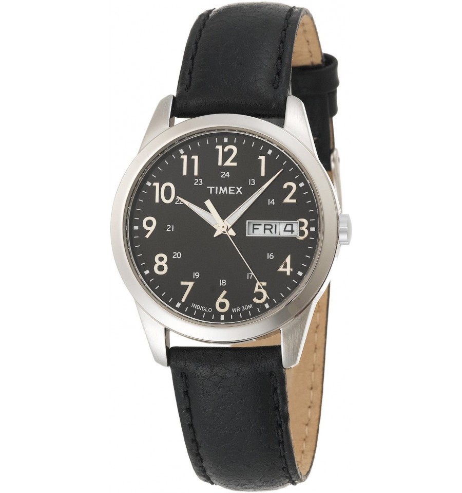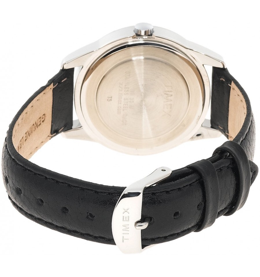Acest ceas de mana barbatesc, Dress T2N107, produs de renumitul producator Timex, are carcasa din alama in nuante argintii, curea din piele naturala neagra, inchisa prin catarama.