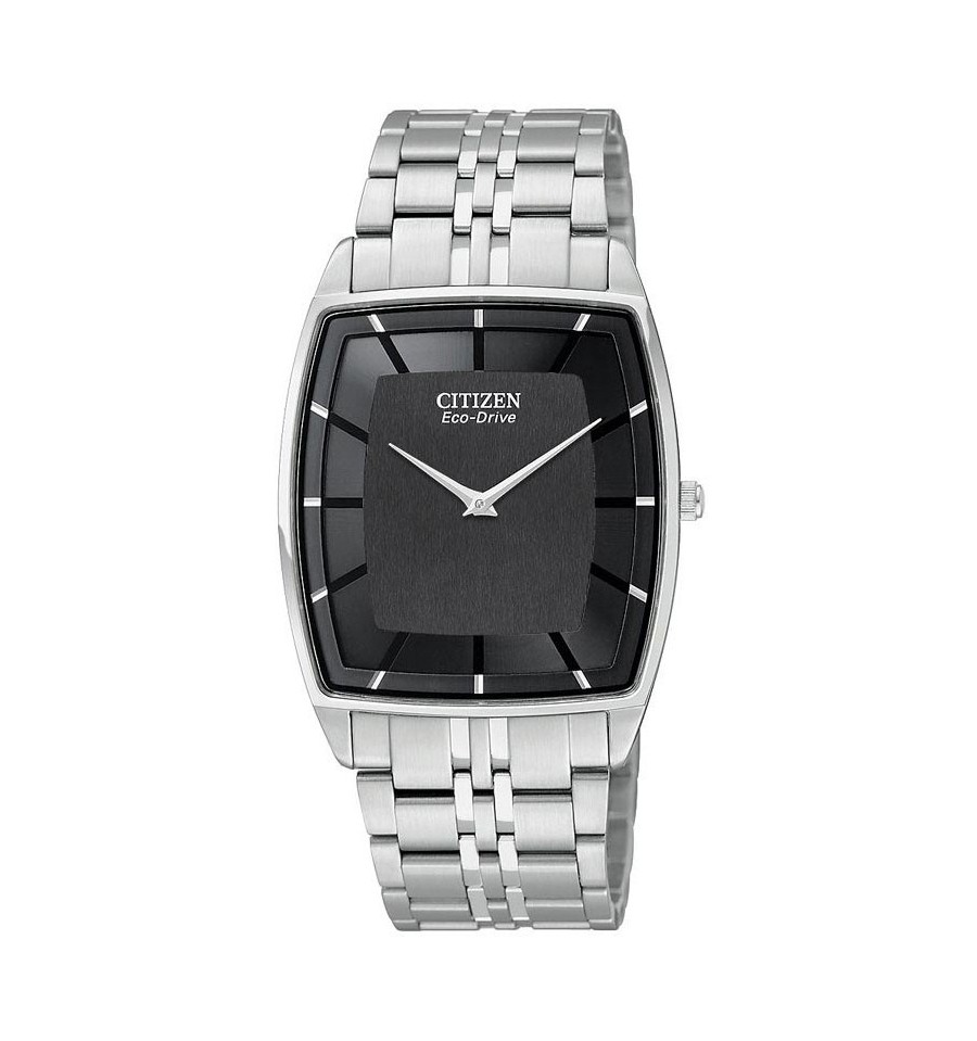 Acest ceas de mana barbatesc produs de renumitul productor japonez Citizen face parte din colectia Stiletto, fiind unul dintre cele mai subtiri ceasuri alimentate de lumina fie naturala, fie artificiala, convertind-o in energie utilizabila prin tehnologia Eco-Drive. Are carcasa si bratra din otel inoxidabil de culoare alba, cadranul de culoare neagra, iar sistemul de inchidere este de tip deployant cu buton. Geamul este din safir rezistent la zgarieturi.